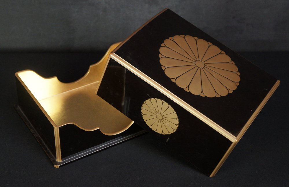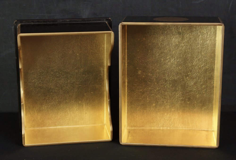 Fine Japanese Buddhist book case lacquered wood and gold lacquer. Artist maker sign on box Shinoda (篠田) Good conditions, with original protective wood box. Immediately usable in its original conditions..