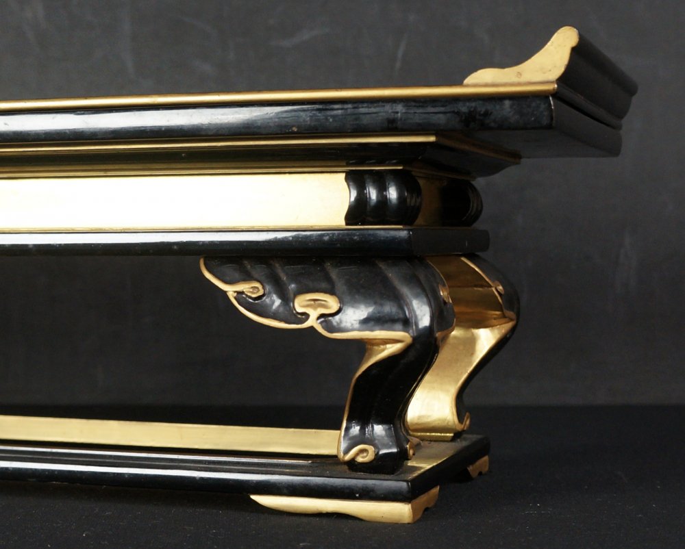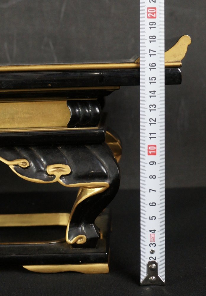 Japanese Buddhist temple altar table stand. Hand craft interlocking solid wood, gold leaf and lacquer finishing. Good conditions, light ware from time and long usage visible.  Immediately usable from Buddhist temple.