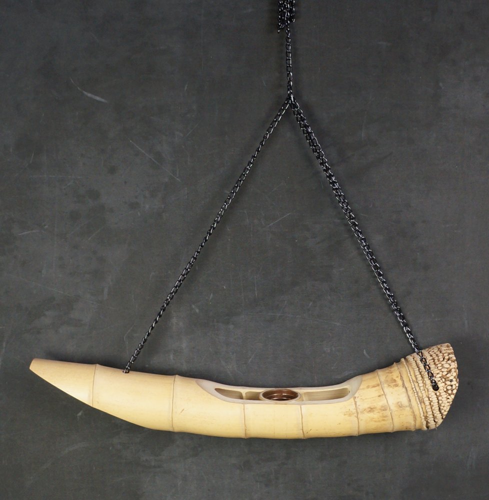 Japanese Hana Kago hanging bamboo vase for Ikebana floral compositions, hand made, light wear from usage and time, no broken parts, immediately usable Japanese bamboo art.
