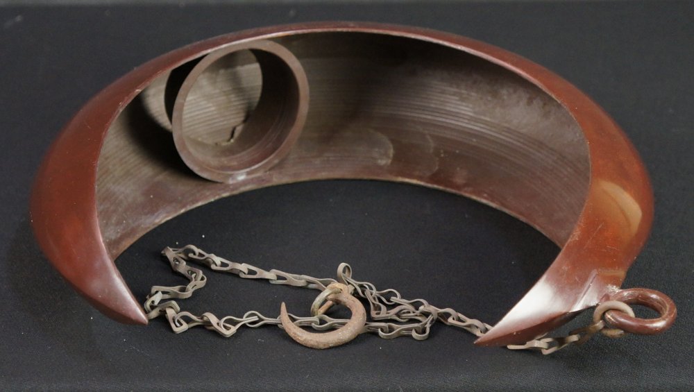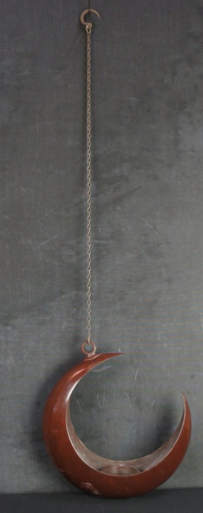 Japanese bronze Ikebana hanging moon vase Japan garden 1980 floral craft
