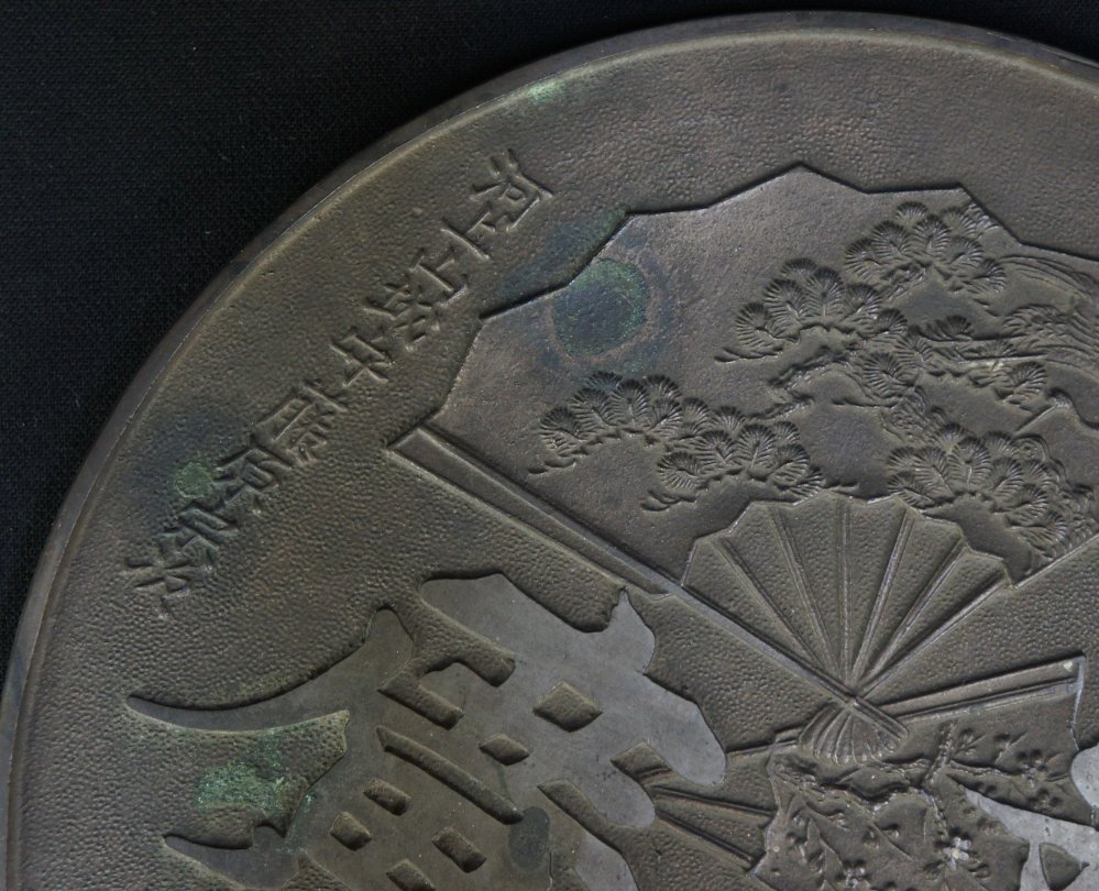 Antique Japan bronze mirror Kagami Bamboo Sakura Matsu 1880