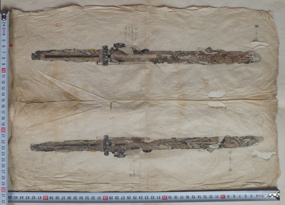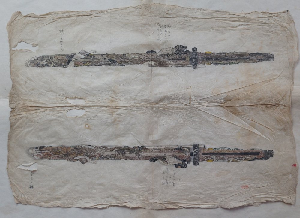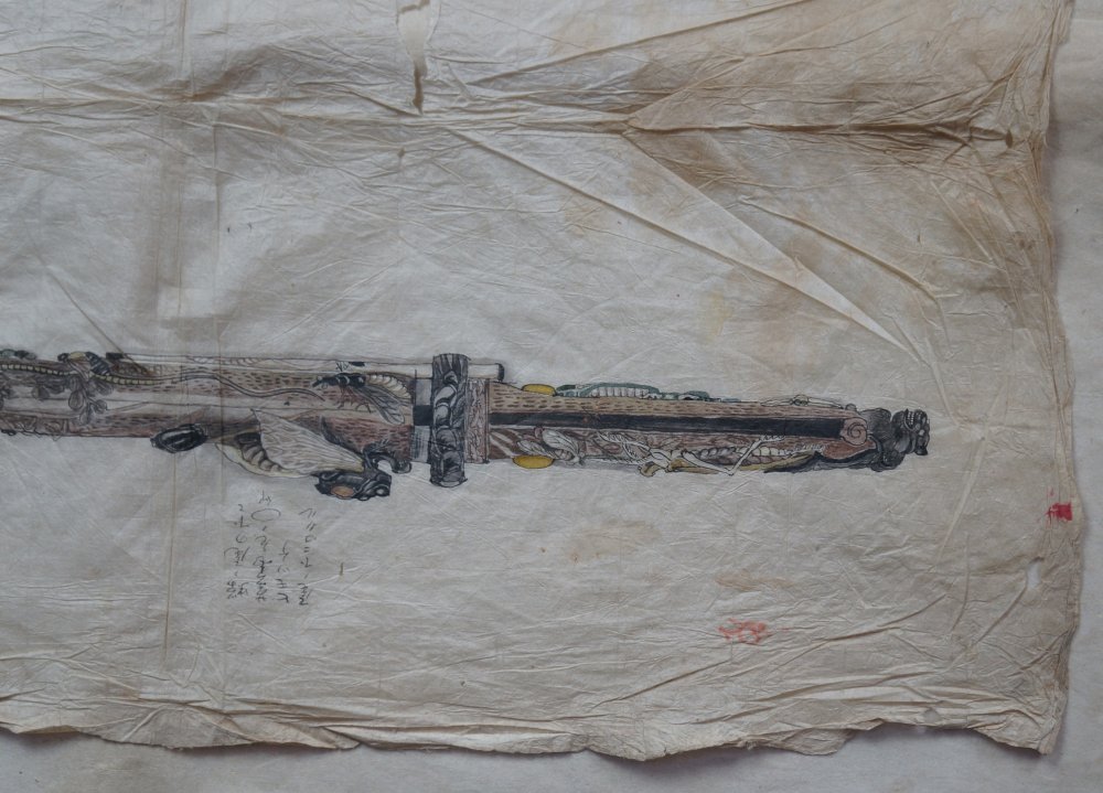 Antique Katana design Edo era art watercolor 1800 Tanto blade