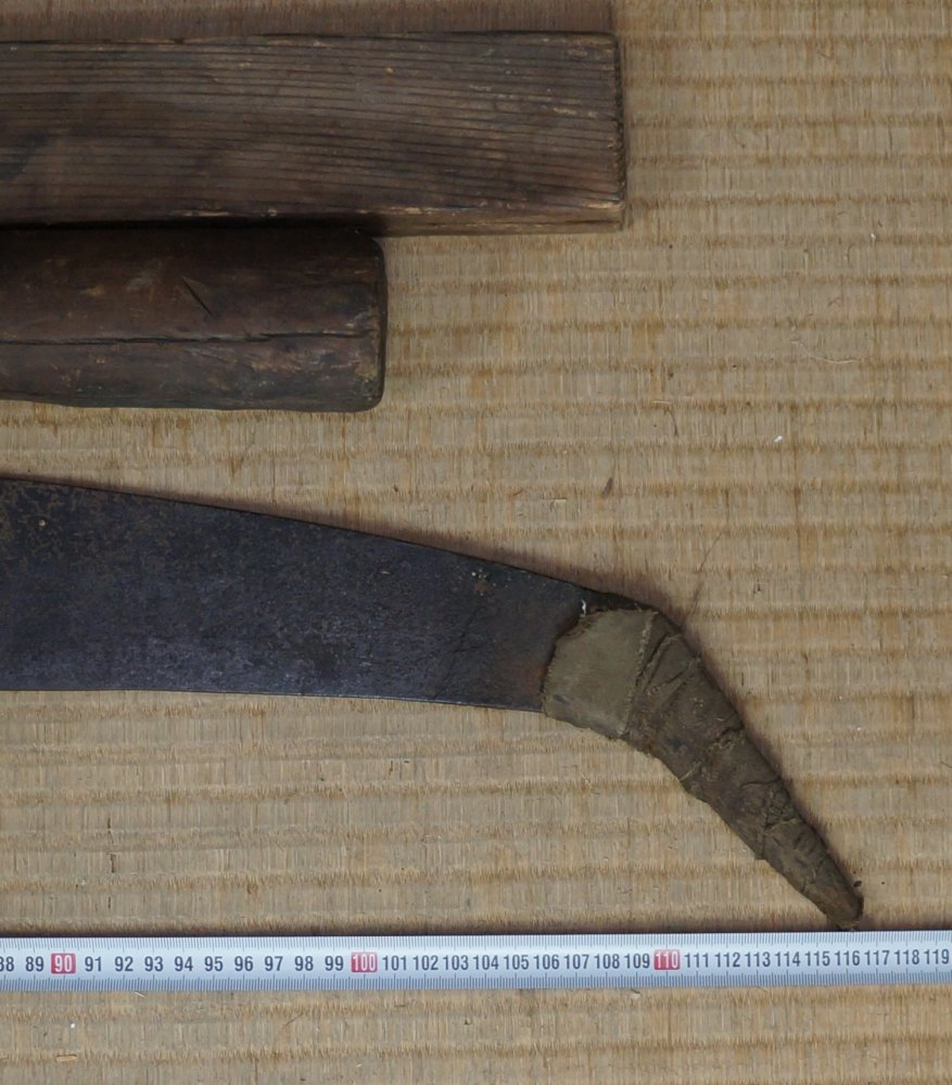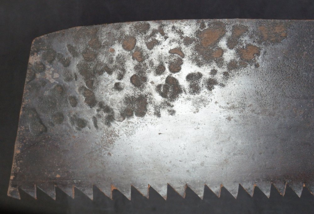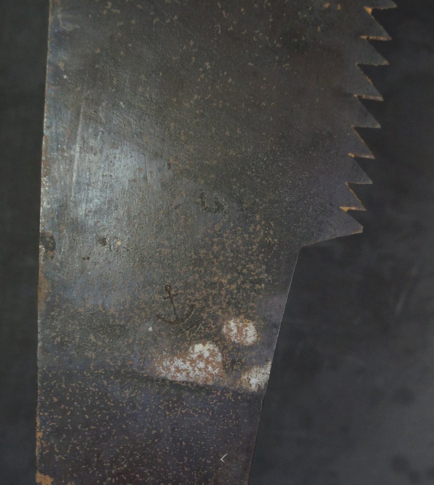 Antique Japanese saw whaleback Meabiki Nokogiri tool hand forged and hammered, makers markings on one side by handle, wear on handle from long usage. Medium good conditions, wear from long use.