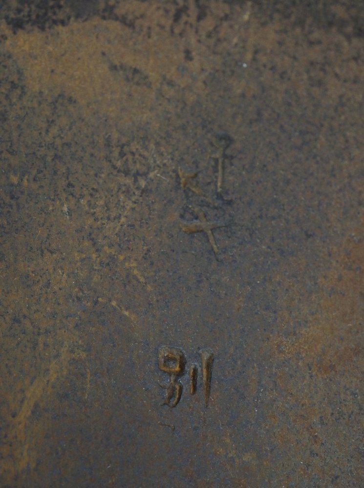 Antique Japanese saw whaleback Meabiki Nokogiri tool hand forged and hammered, makers markings on one side by handle, wear on handle from long usage. Medium good conditions, wear from long use.