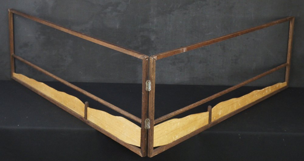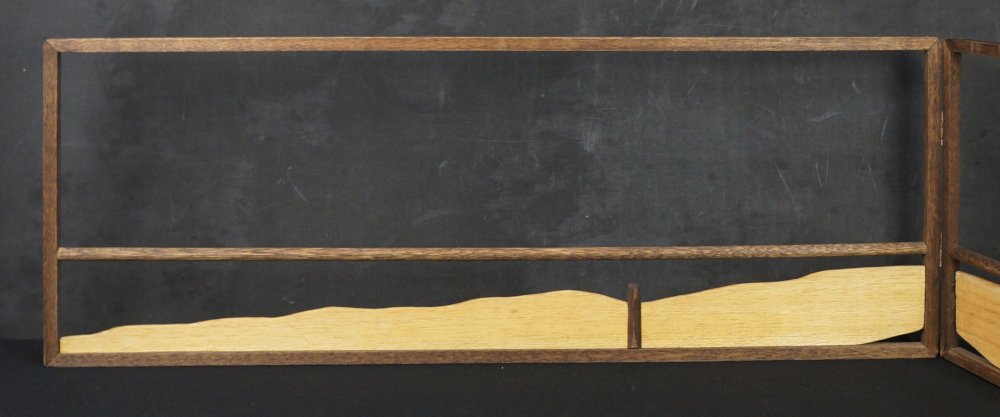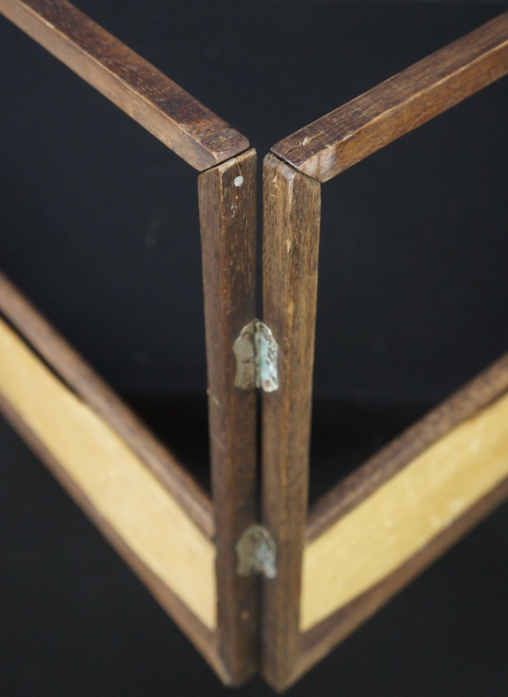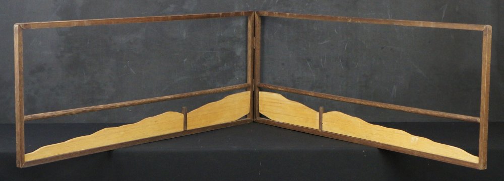 Japanese Architecture interior Tea Ceremony minimalist space structure, simple and functional design to create a micro space for Japanese Tea Ceremony. Made of 2 wood panels mounted on wood structure, obstruct receding mountain landscape, metal hinges. Light wear marks from usage, please see detail photos, Japanese art.