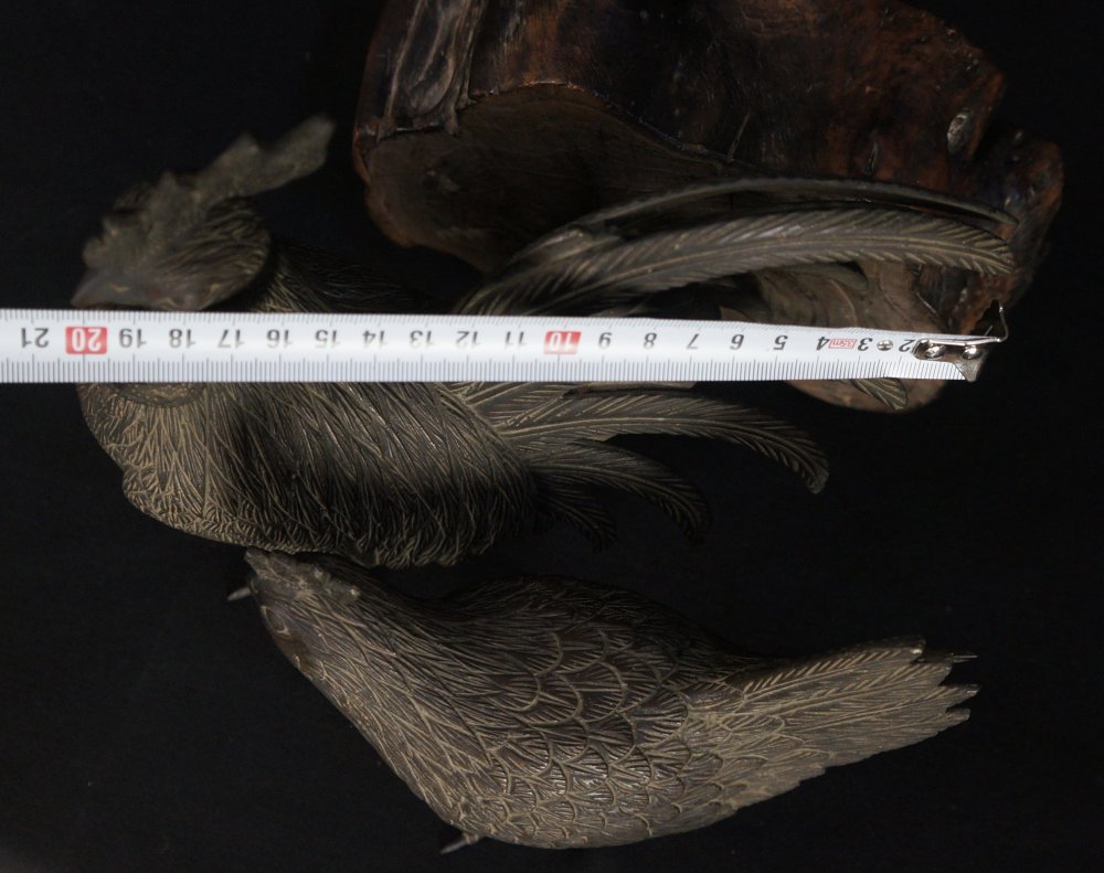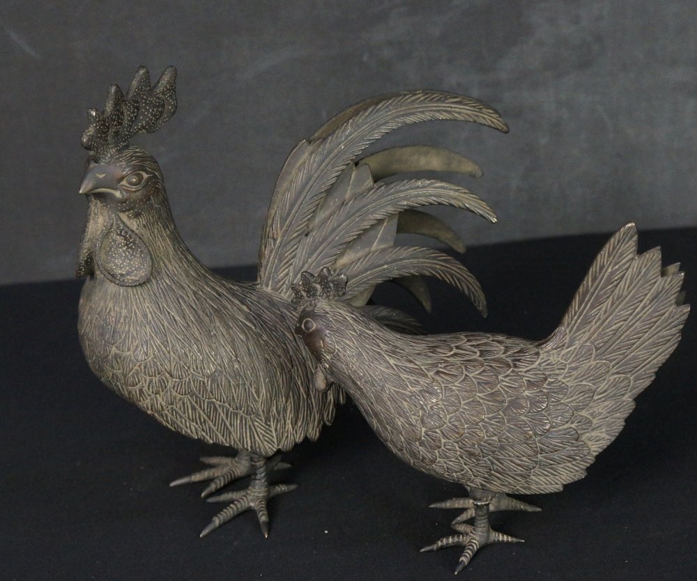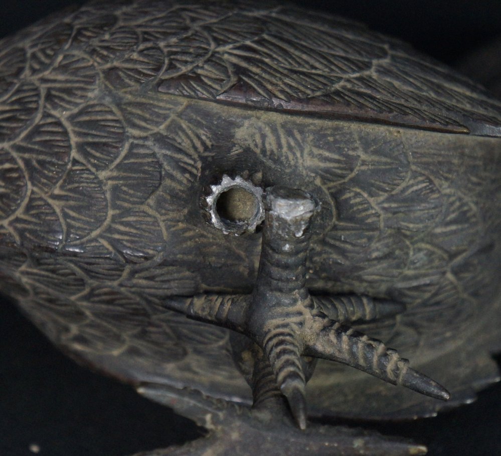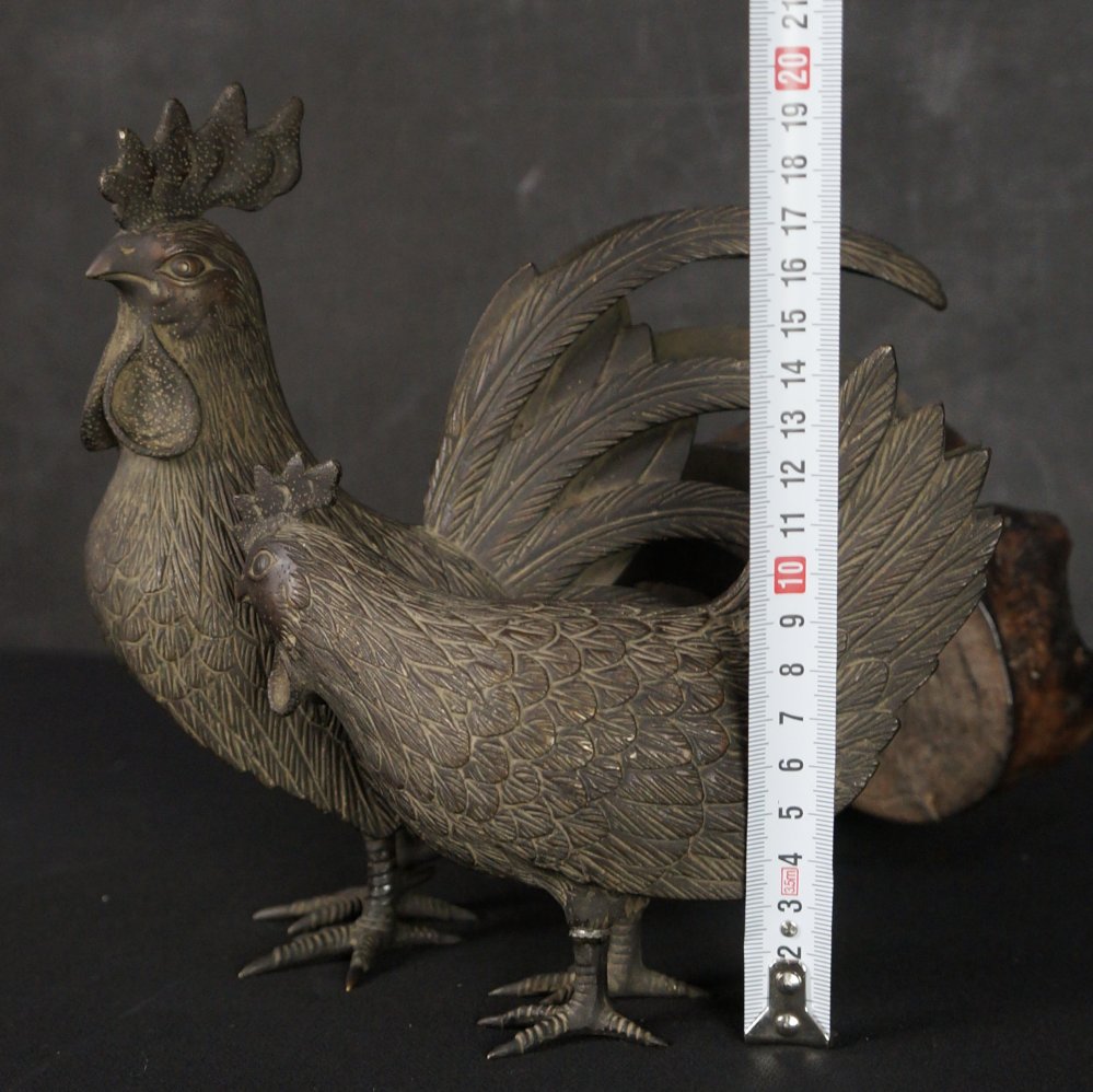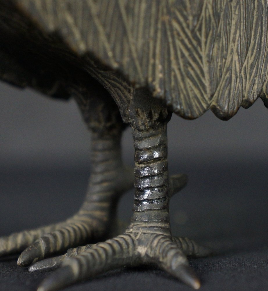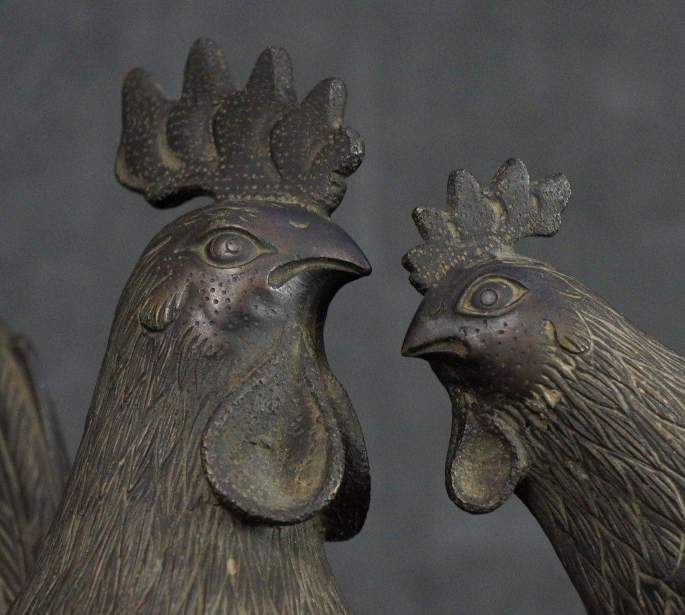 Antique Japanese bronze Ondori-Tori rooster culture 1900 rural Japan lost wax craft