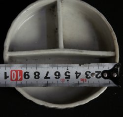 Dimensions:  Diam 11 H 3 cm, weight 190 g + wrapping.
