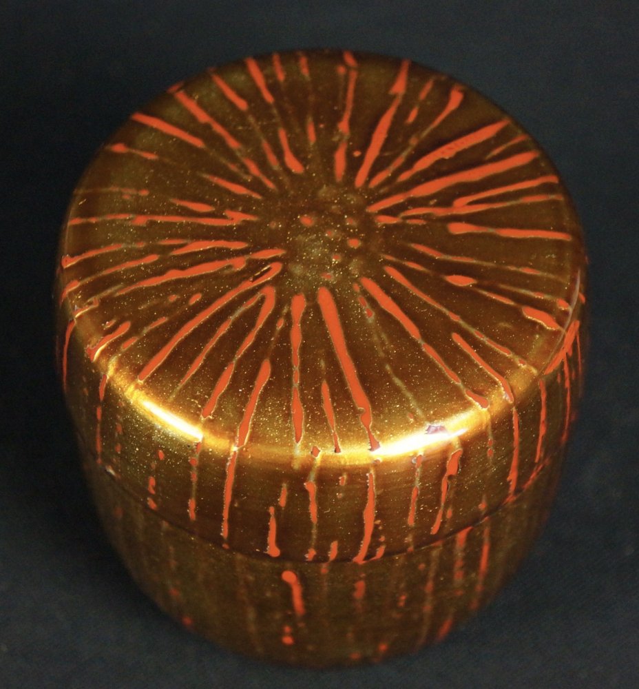 Fine Japan lacquered wood Natsume tea caddy 1970 Akanuri hand craft.
