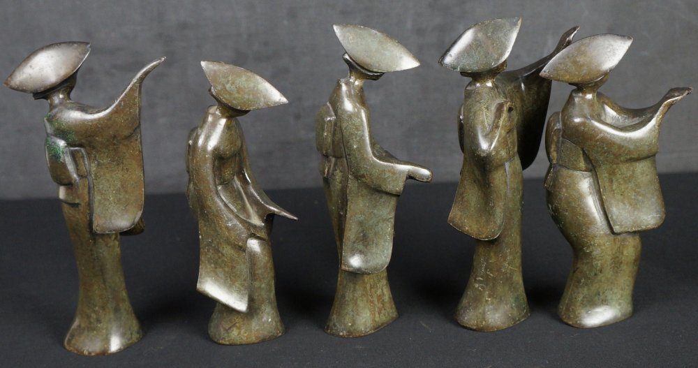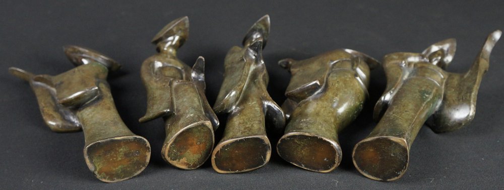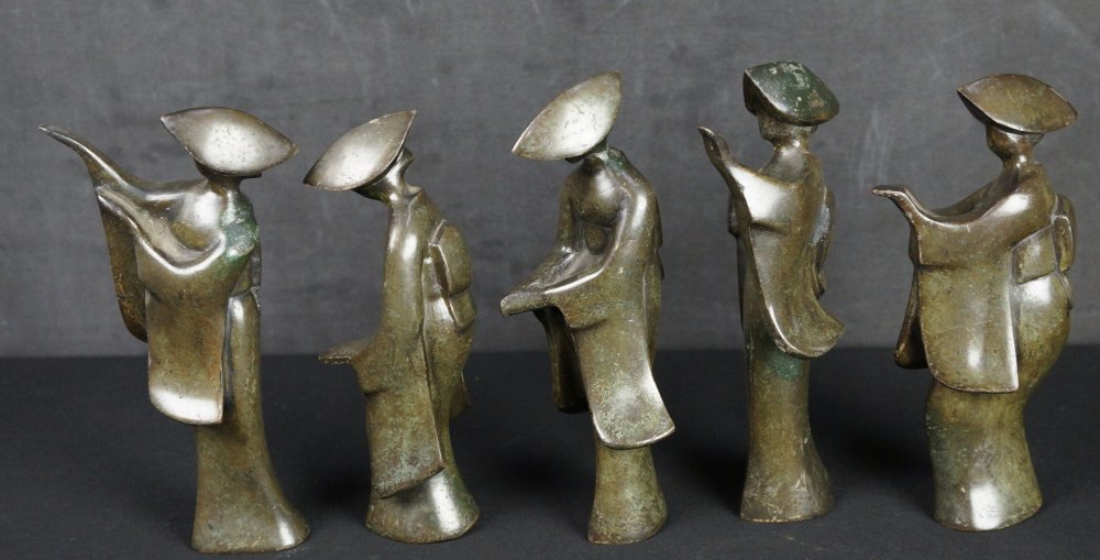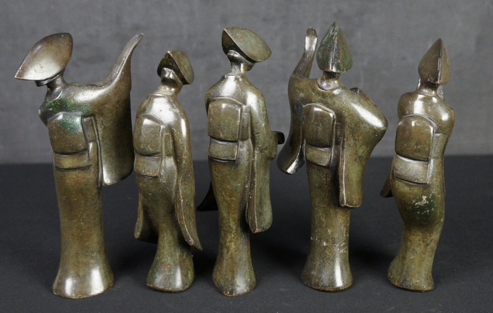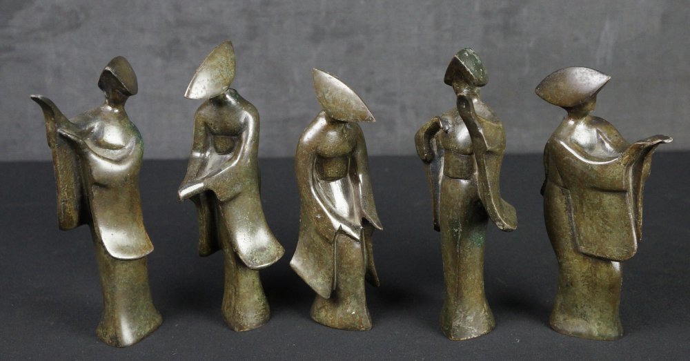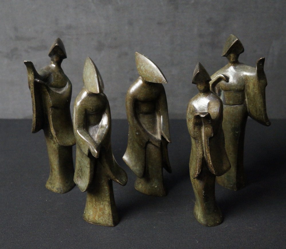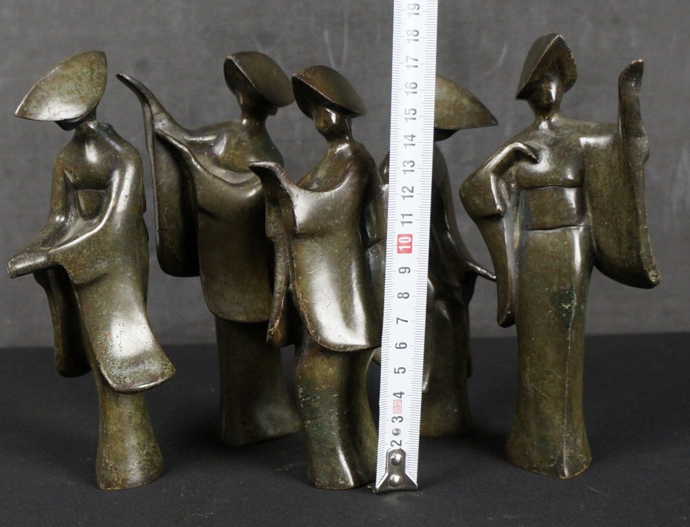 Vintage Japanese Bon-Odori dance bronze composition, total of 5 kimono figurines in 5 dance poses. Nice bronze craft and patina, lost wax technique bronze sculpture. Good conditions, no broken parts. Immediately usable.