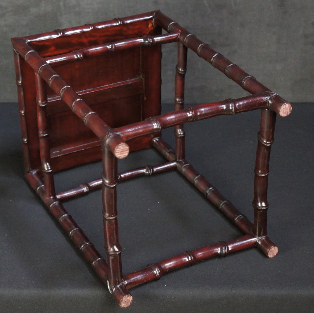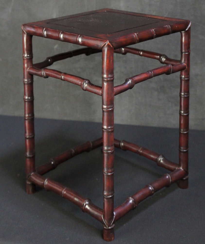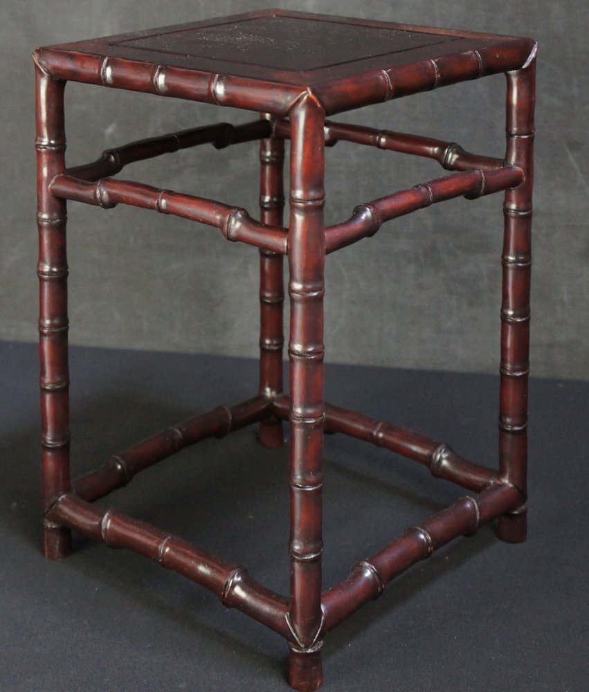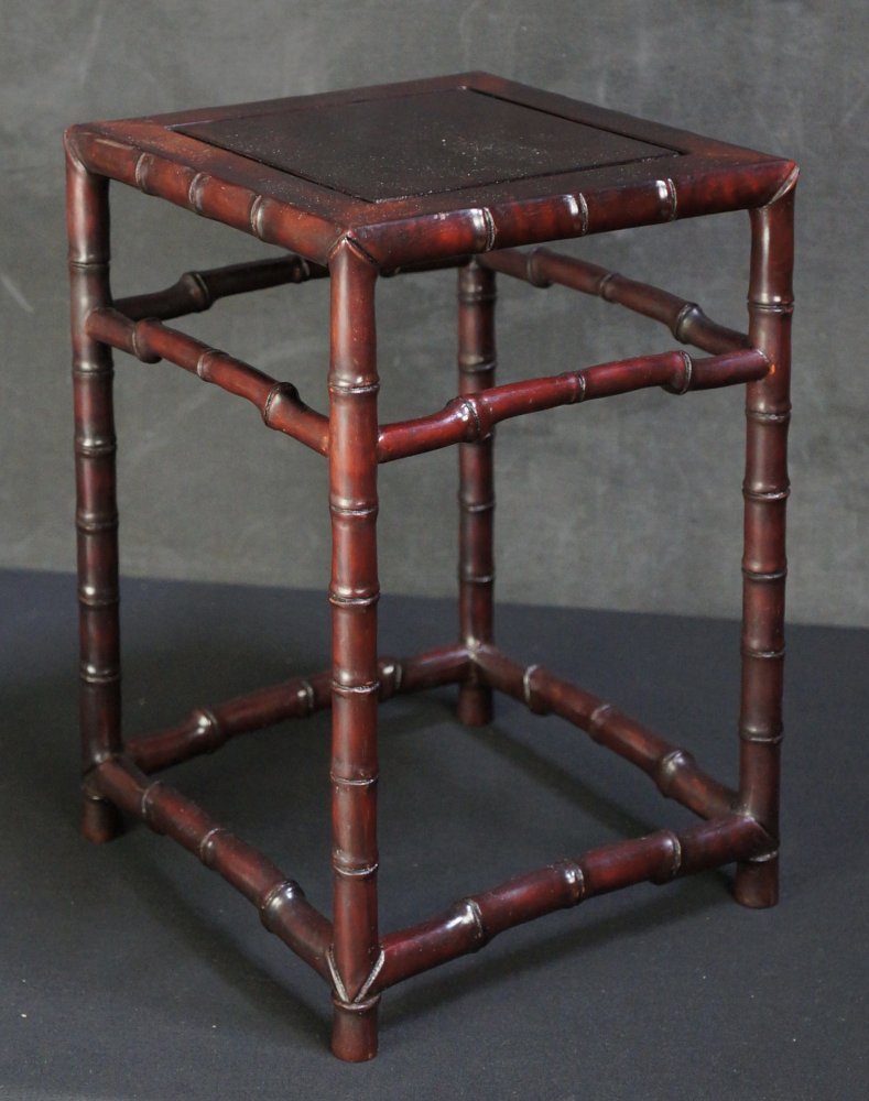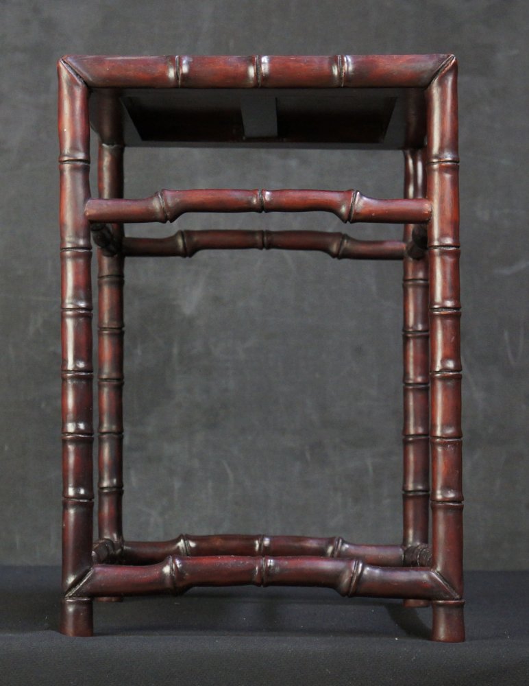 Japanese Dai stand for bonsai or Koro censer, bamboo design. Wood, craft nice patina and shape, interlocking joints, solid structure. Some wear from usage and time, no fractures. Please see detail photos, immediately usable.