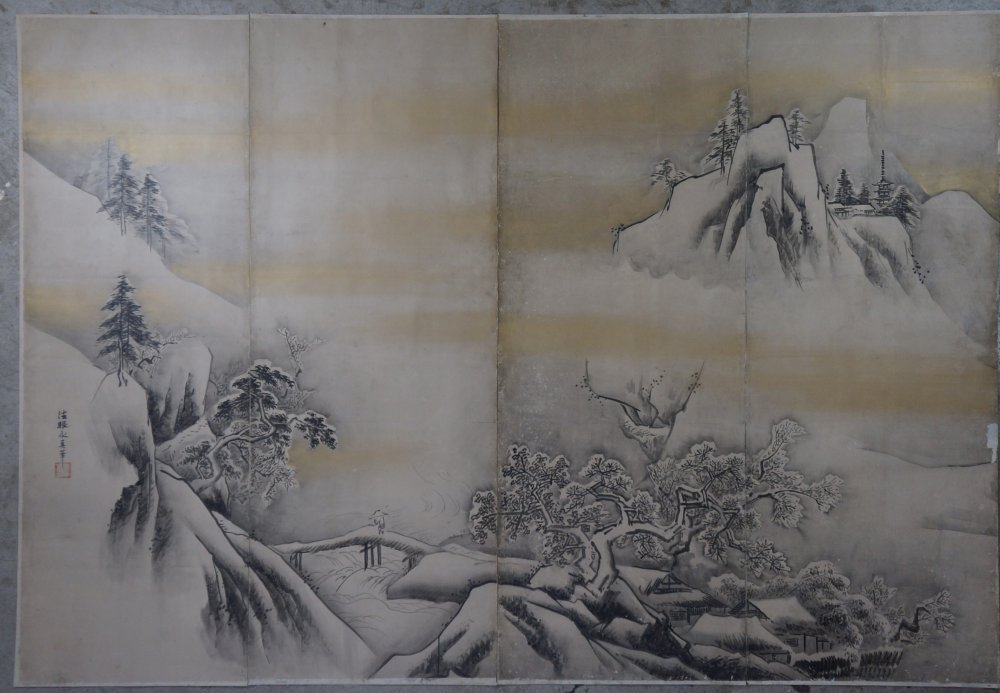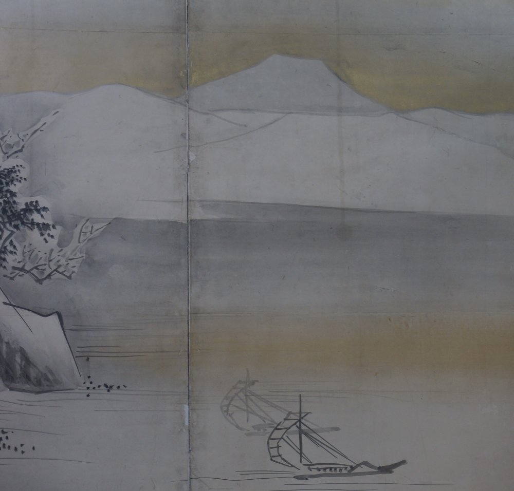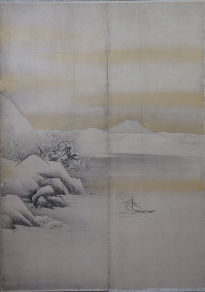 Antique 17th Century Japanese Byobu Screen Painting – Edo Period (c. 1650–1680)