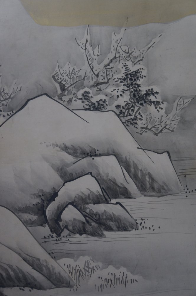 Originally mounted as a six-panel folding screen, the artwork has been carefully detached and preserved to prevent deterioration in to its original 6 parts. The composition shows exceptional craftsmanship, with delicate brushwork and nuanced gradations of tone.