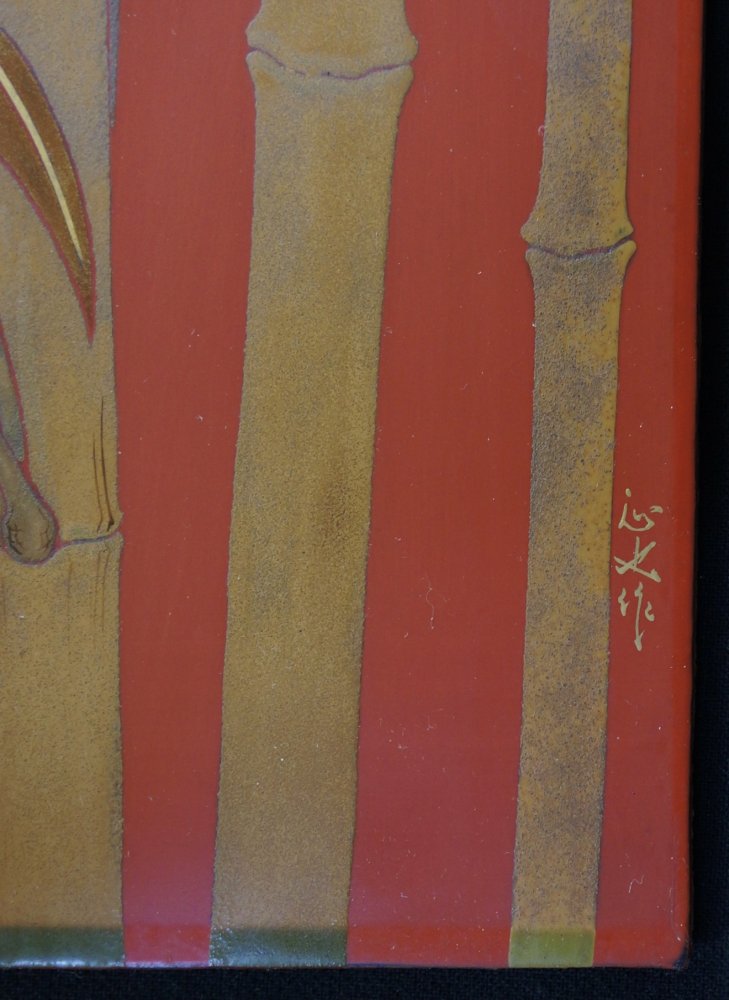 Japanese lacquer art hand made bamboo motif, some wear from usage, immediately usable.