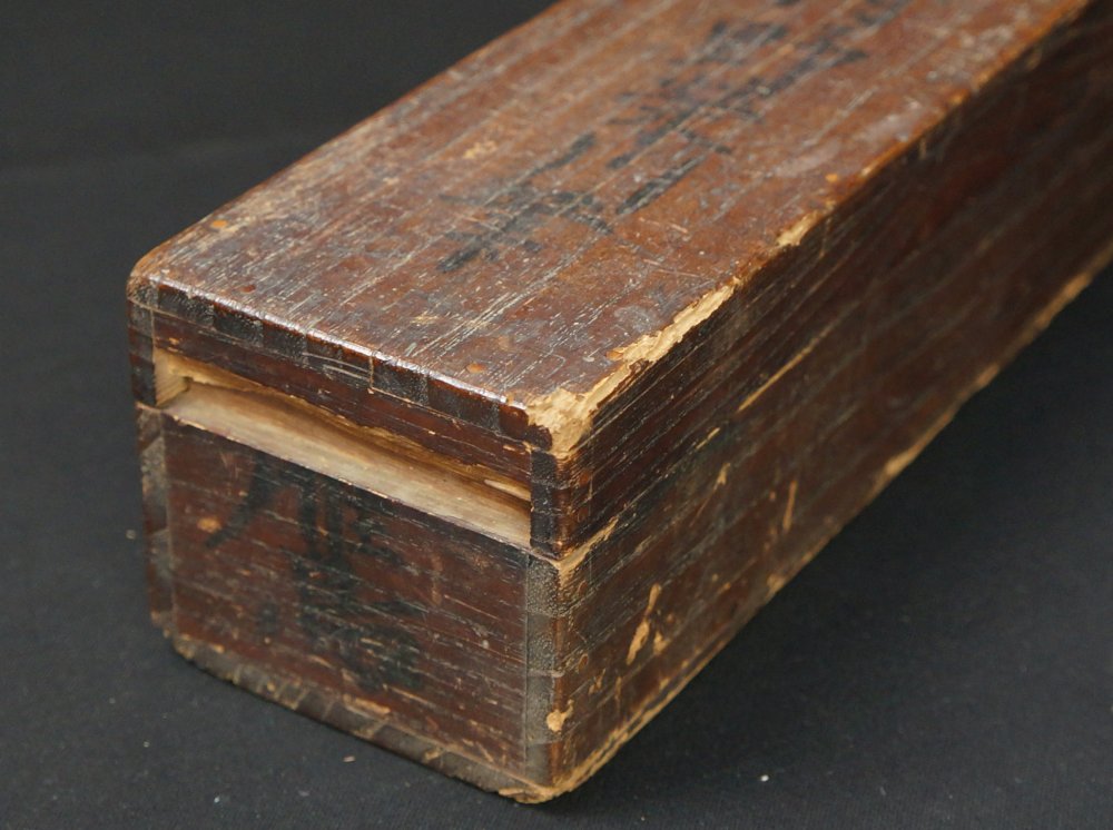 Conditions: medium good, wear from exposure and time, old restorations visible on back, extensive wear on wood box. Please see all detailed photos.