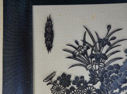 Katagami hand cut paper with traditional Japanese floral motif by (Yobogata). Very good conditions, no wear visible. Please see detail photos. Immediately usable.