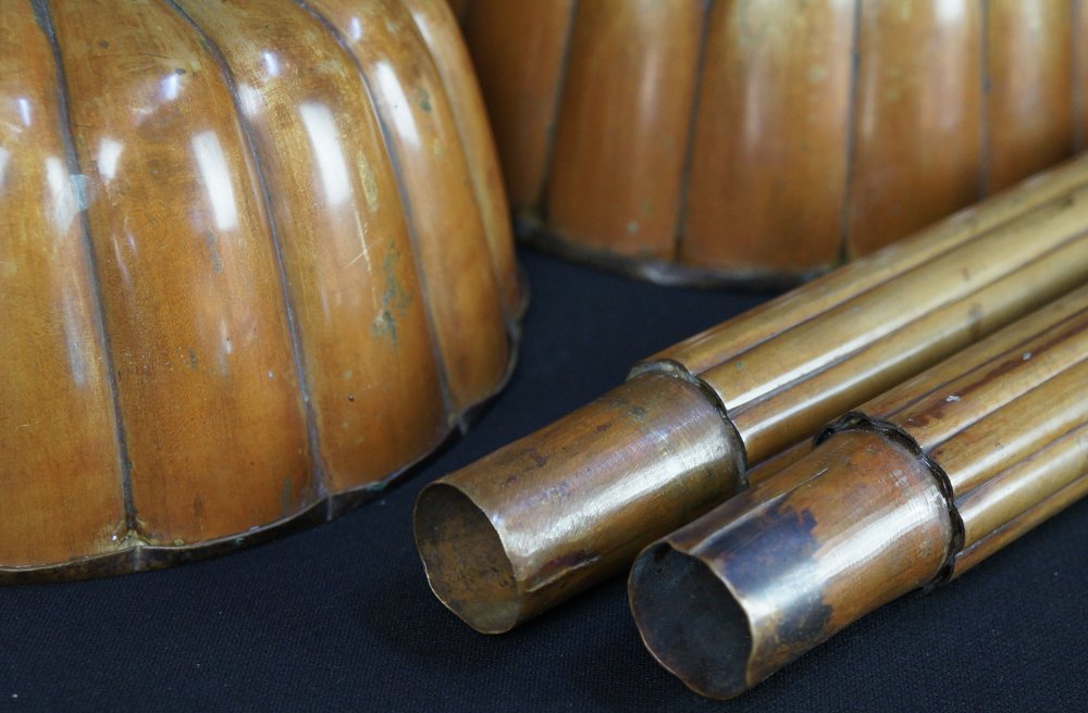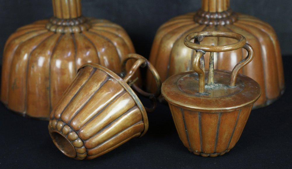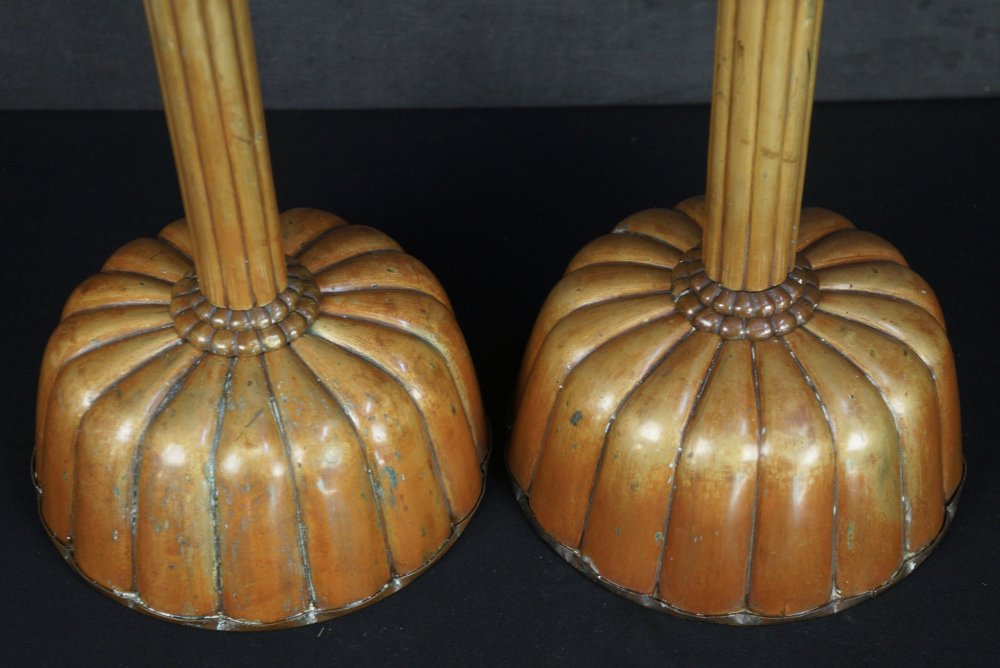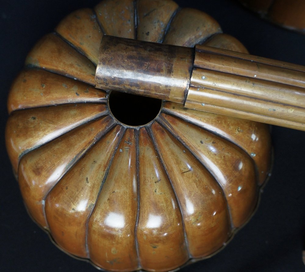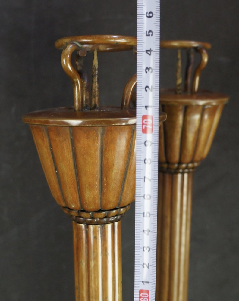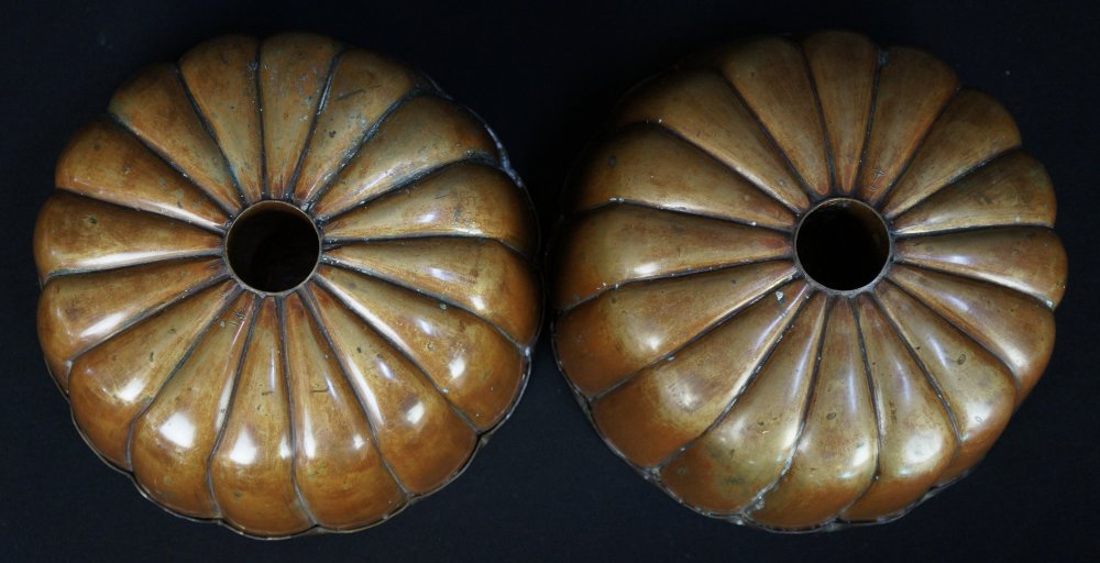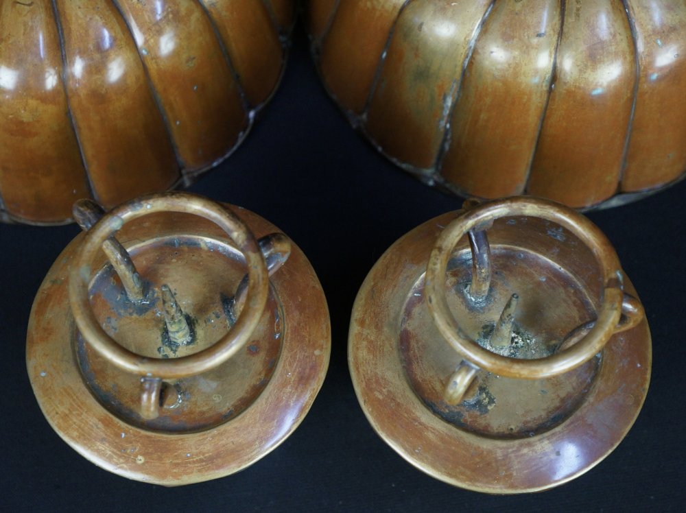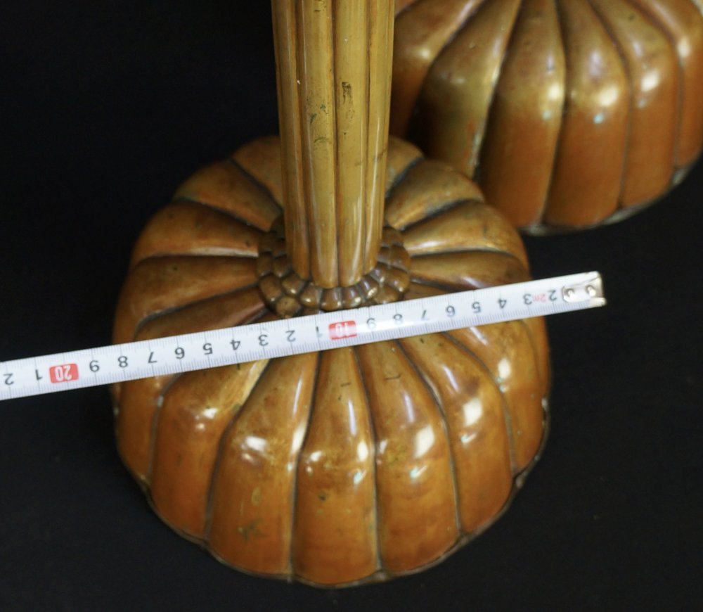 Antique Japanese temple candle stand bronze Shokudai Kikumon shape 1800 Edo
