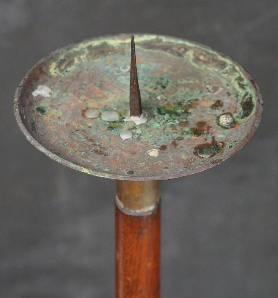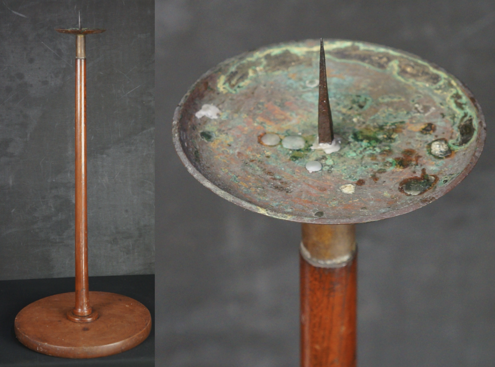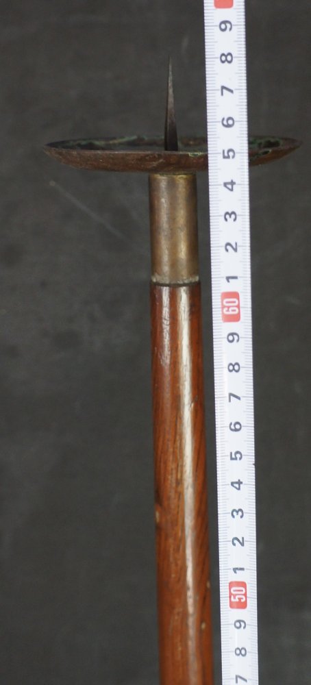 Antique Japanese wood candle stand all in original conditions, complete in all its parts as in photos. Upper bronze plate with old wax sediments, sharp iron tip.  Nice patina simple design, good conditions, light wear from time and use. Historical item, Japanese tatami top candle stand interior.