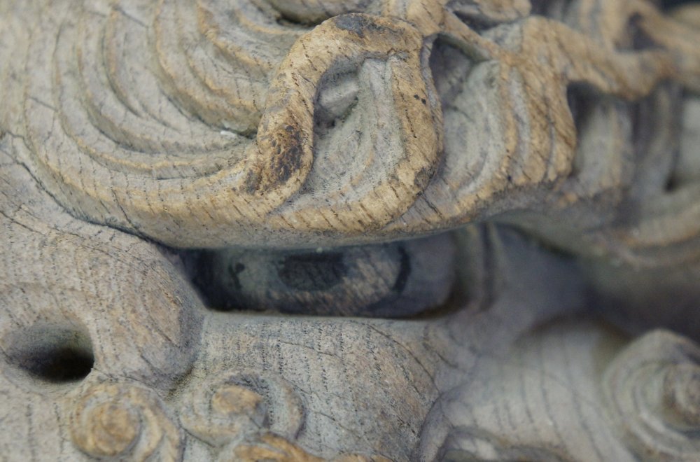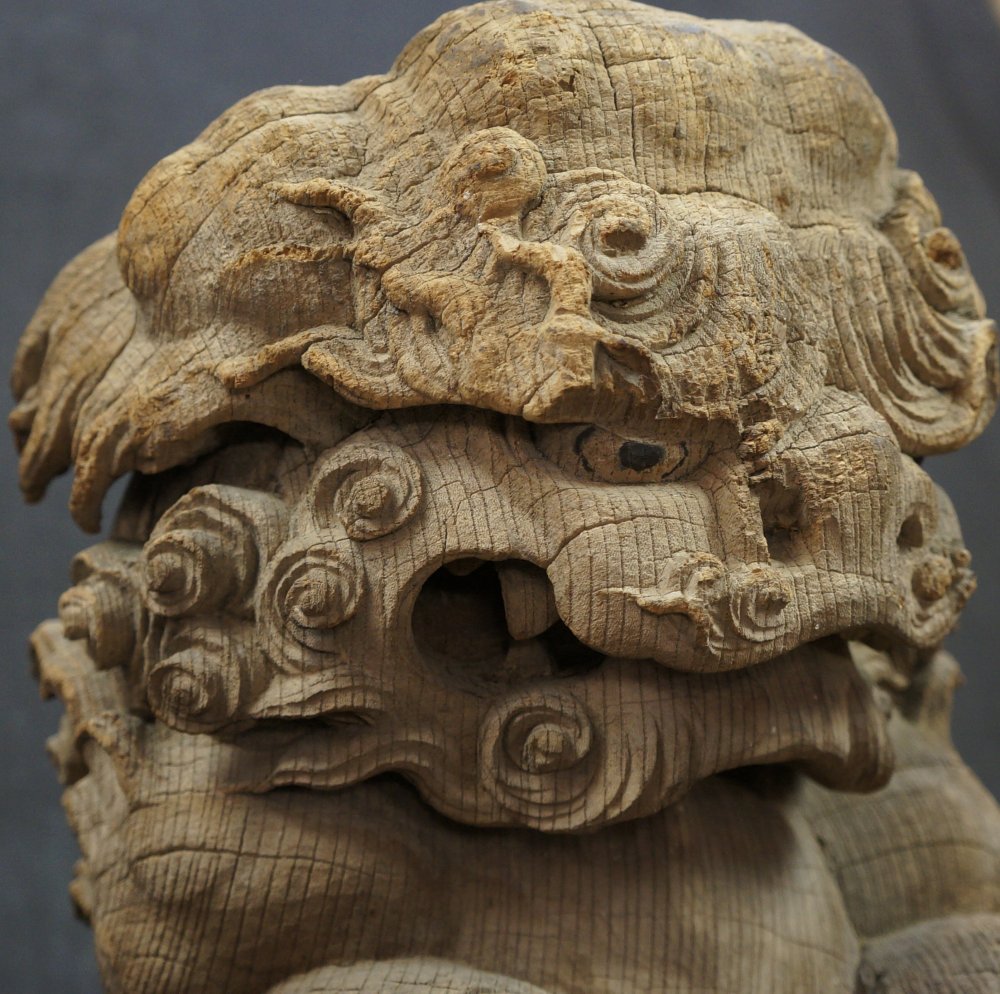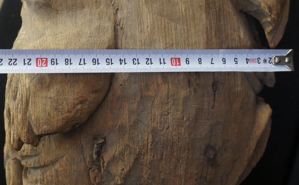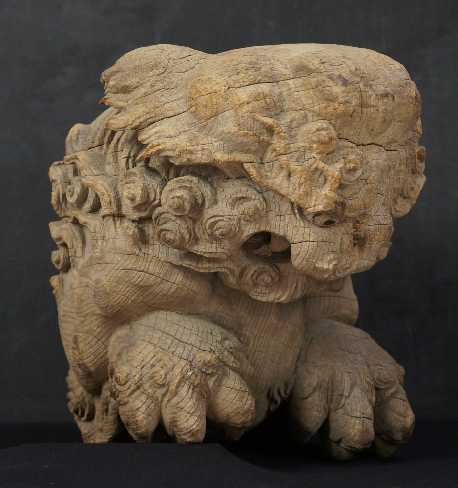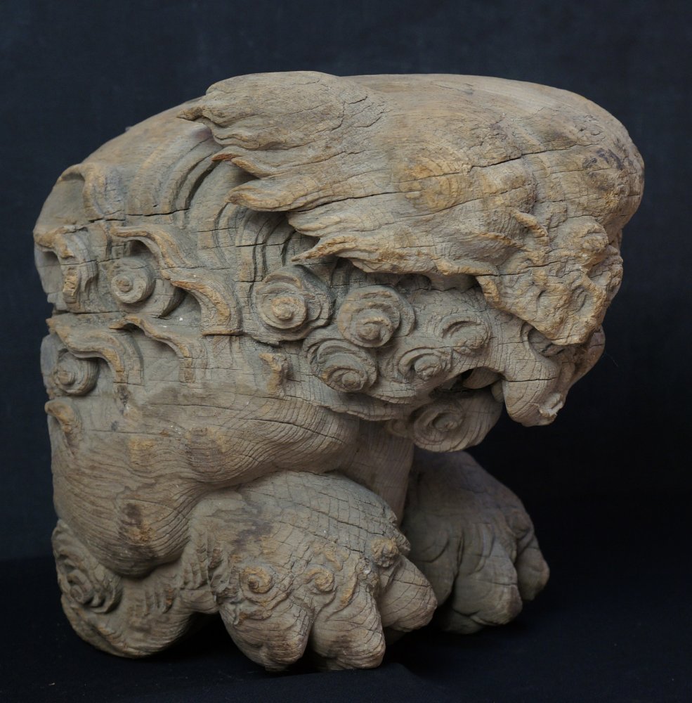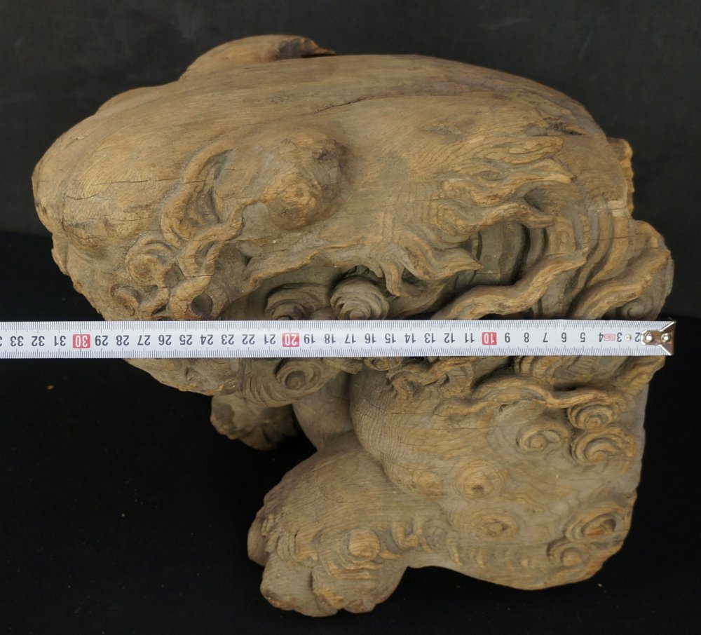 Hand carved by Miya-Daiku temple builder, it has been expose to Japanese forest elements and humidity. Antique Japanese rural Buddhist sculpture, to be handled with care.