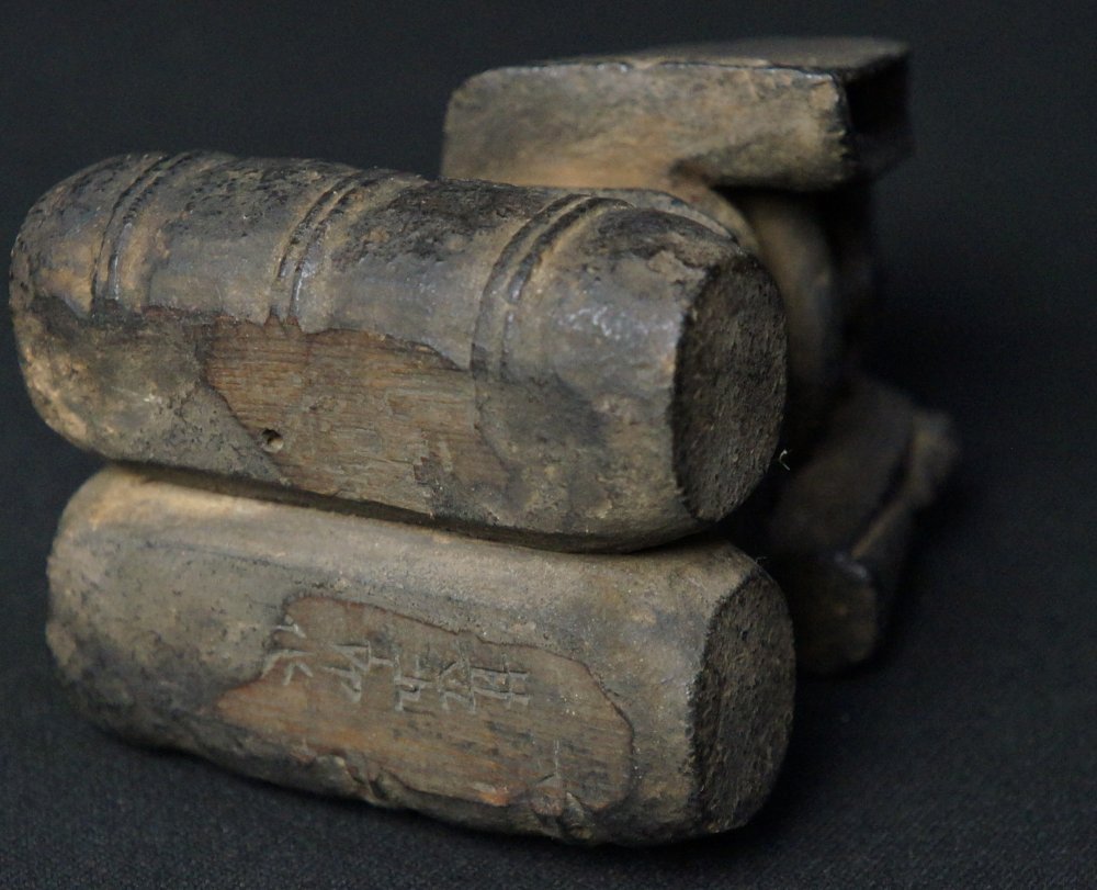 Antique Japanese miniature Shinto deity Daikoku fortune god wood carving. Medium conditions, extensive ware from long usage and time, rural primitive Japan. immediately usable.