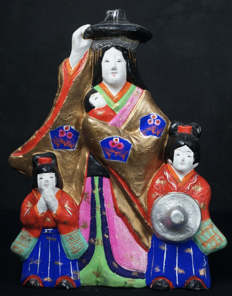 Japan Tsuchi-Ningyo Samurai doll painted plaster 1930 D