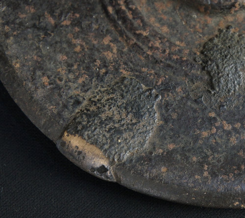 Conditions: medium poor, extensive wear from time and use, antique bronze restoration, please see photos