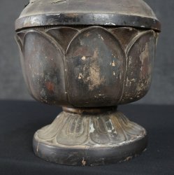 Antique Japan Zen Buddhist temple Koro censer lotus wood sculpture 1800