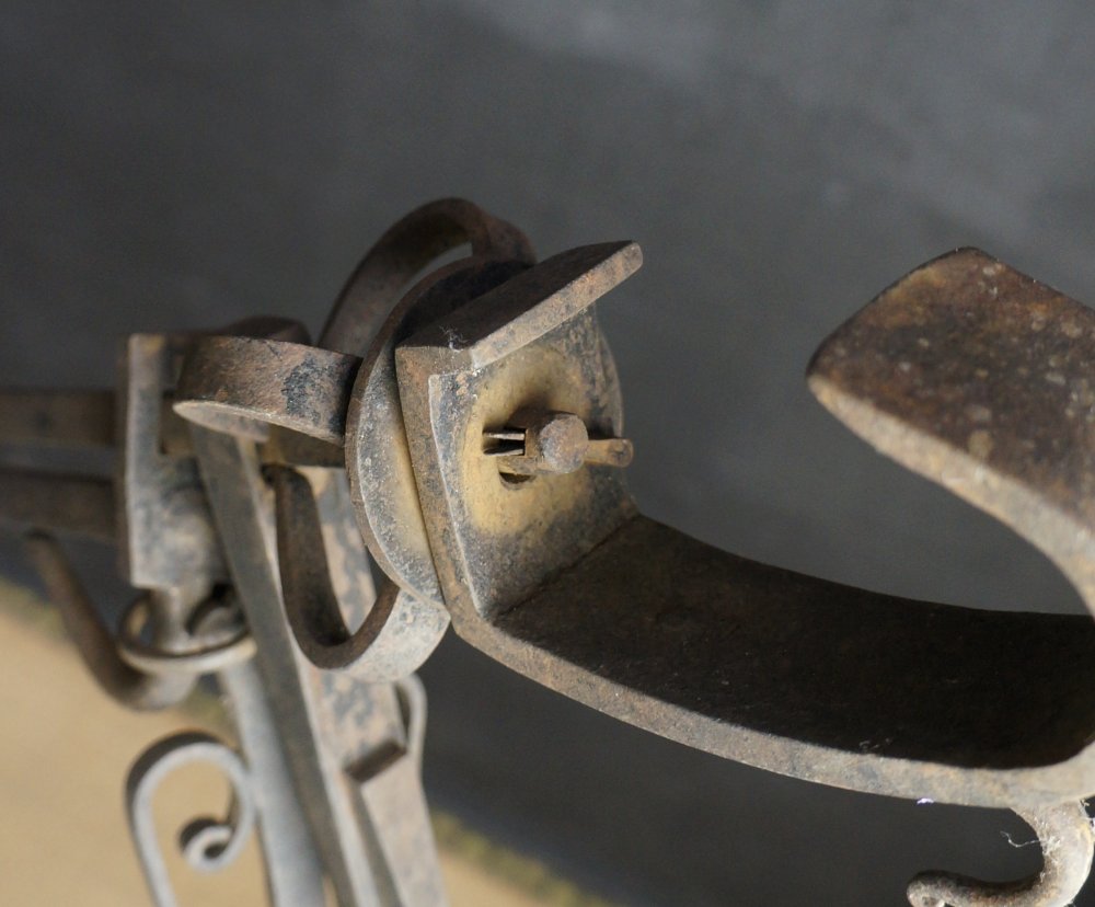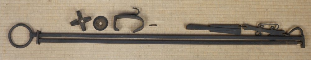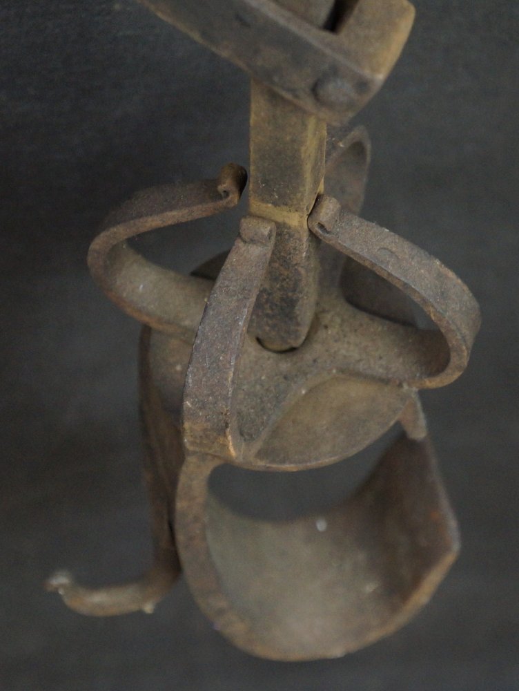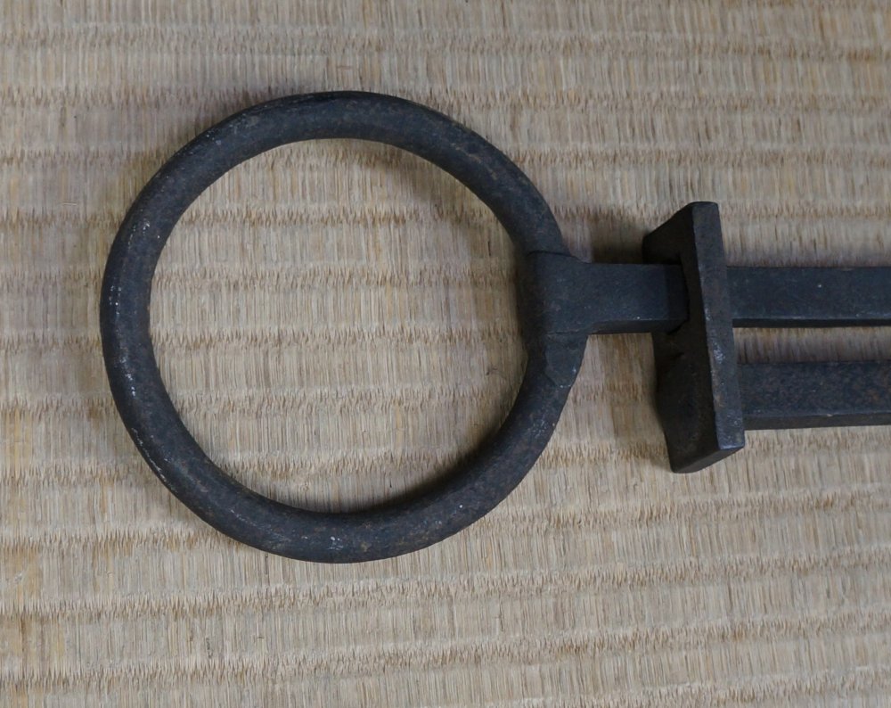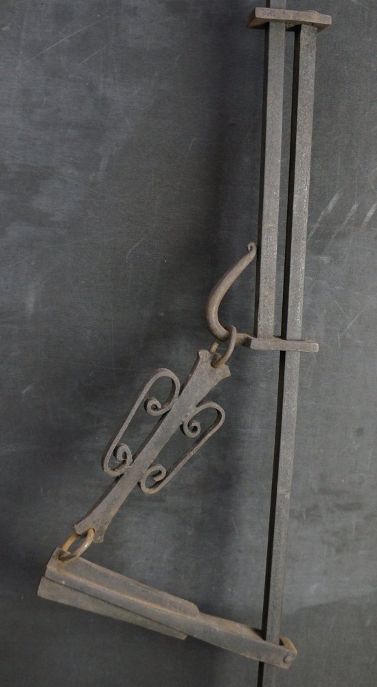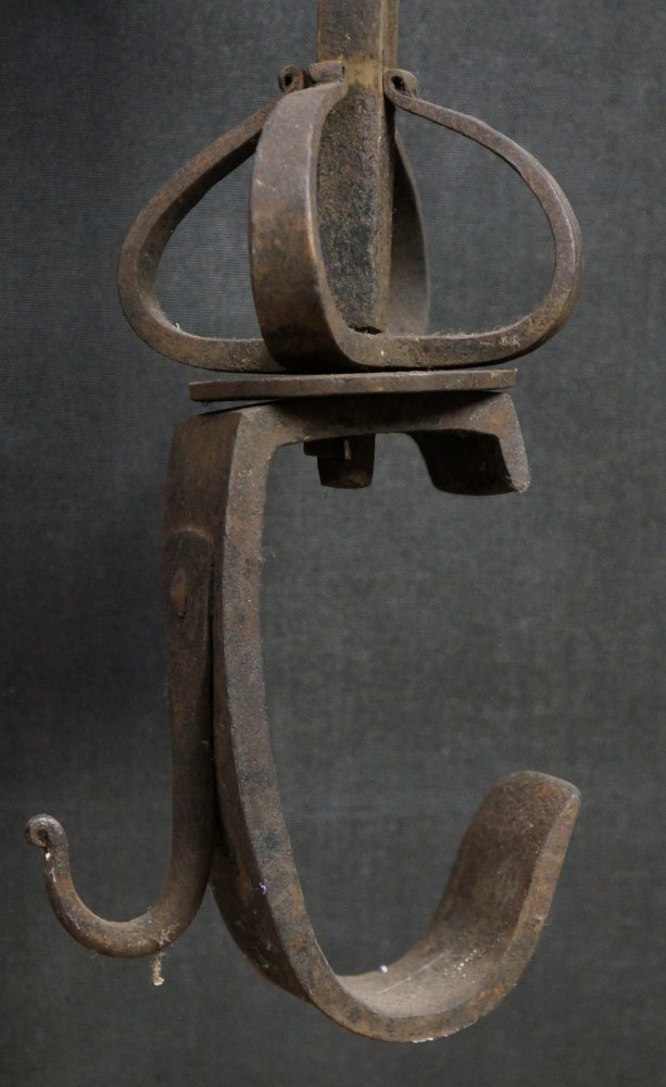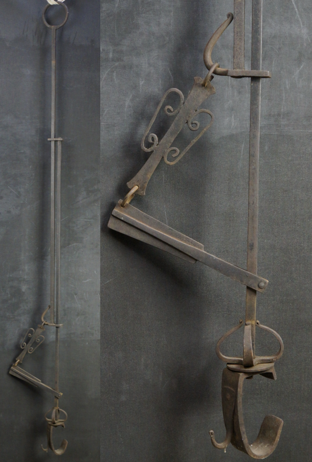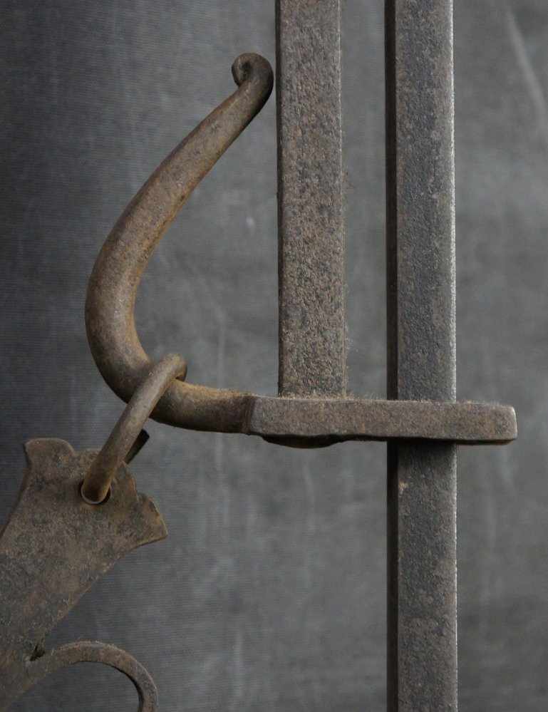 Antique Japanese iron Jizai kettle holder tea making tool, hand forged iron, simple  and functional use, all parts working with nice patina, from old Japanese house with Irori Japanese fireplace (please see sample photo). Some wear from long usage and sut sediments, immediately usable, good conditions.