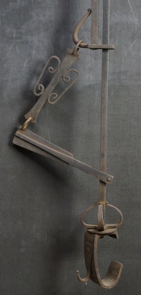 Japan Antique iron kettle holder Jizai 1880 craft Irori Japanese fireplace house