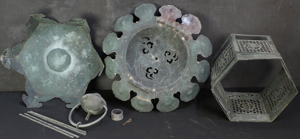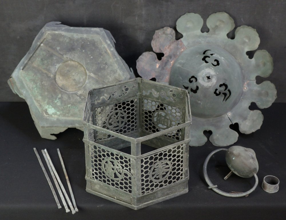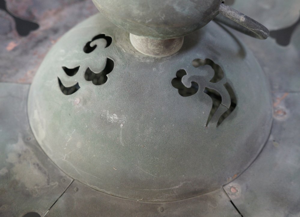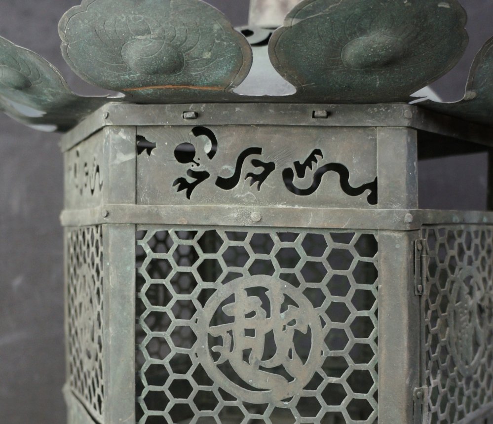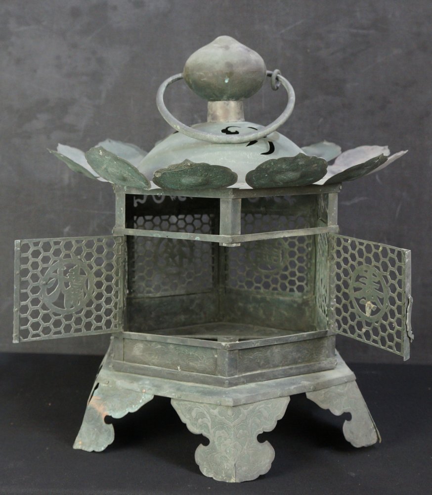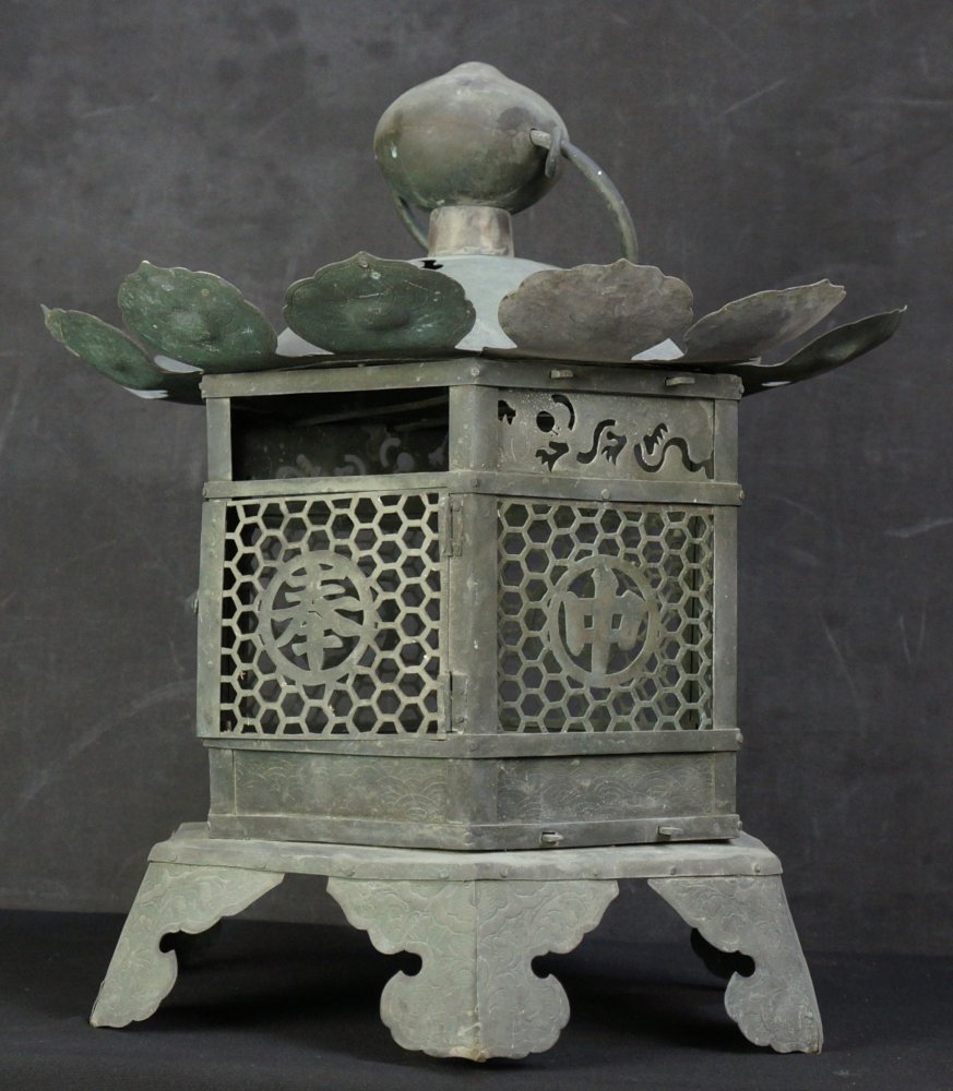 Antique Japanese Buddhist lantern Tsuridoro temple lamp dated 1847 bronze craft