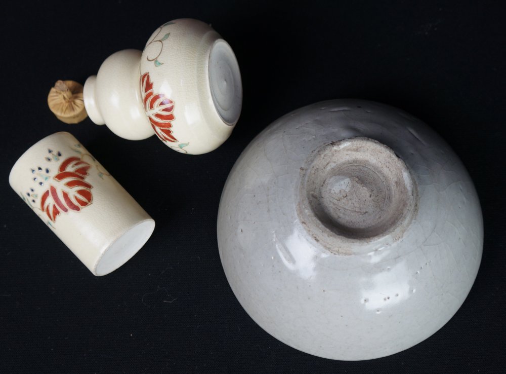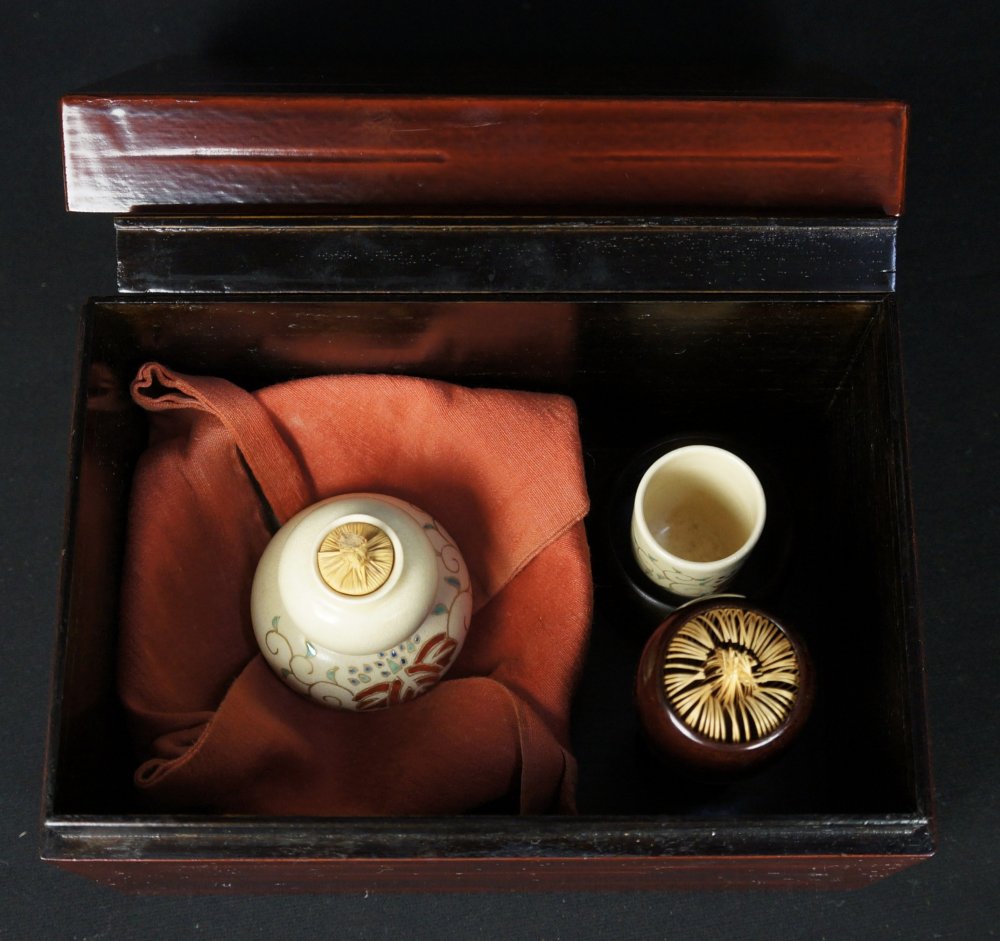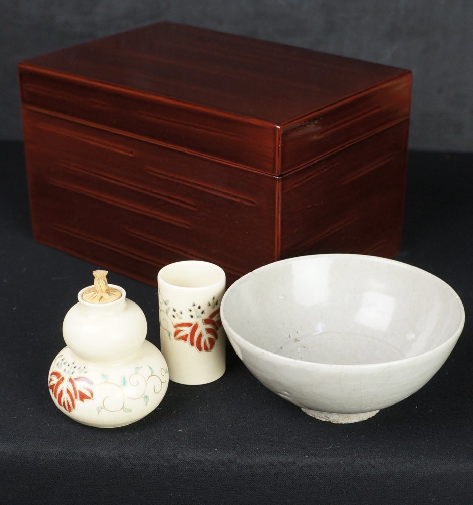 Chabako Japanese tea box set Chawan 1970 kiln hand craft.