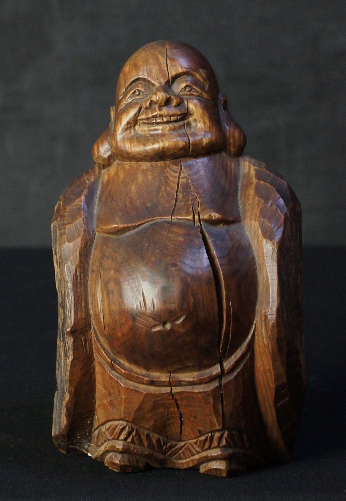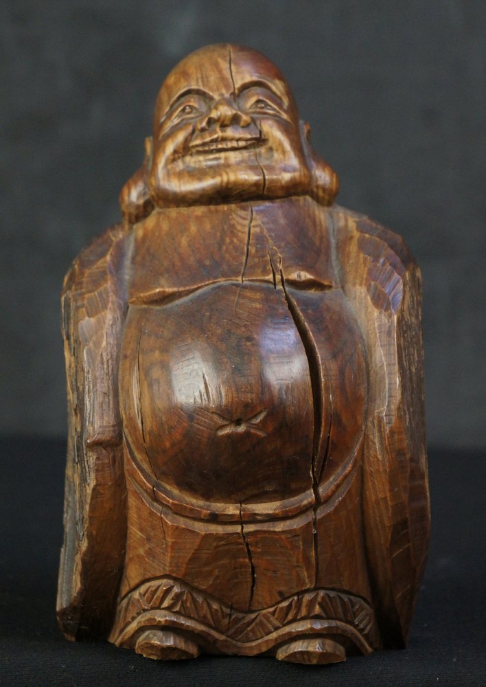 Rural Japan Kibori Wood Carving sculpture Hotei deity fortune god 1950 Japanese craft