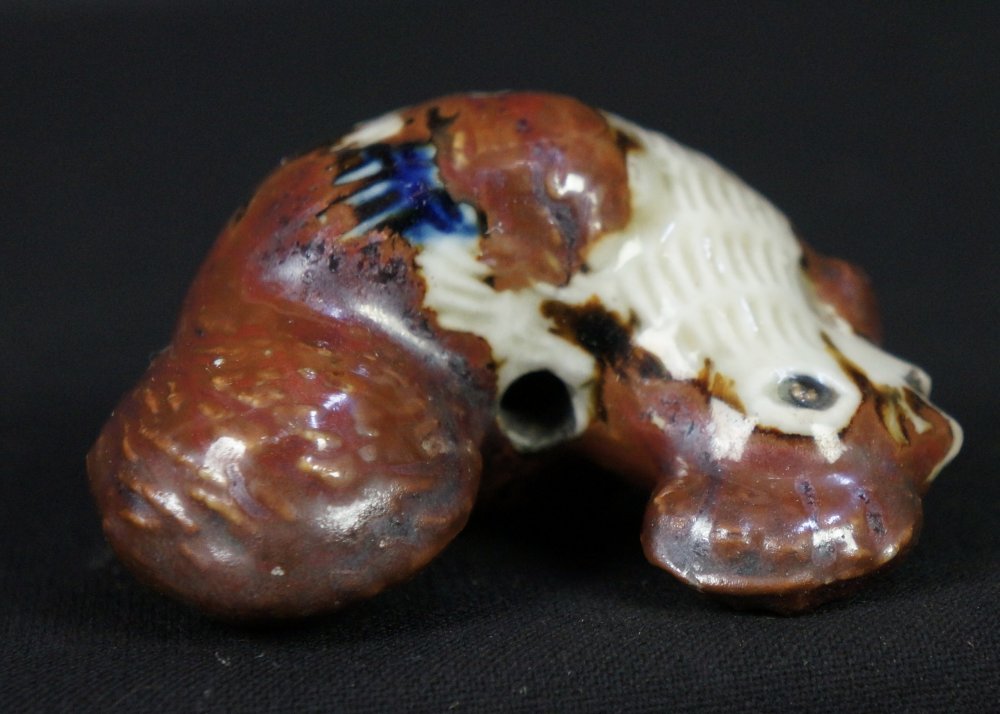 Antique Japanese Seto ceramic water dispenser Suiteki for Zen writing calligraphy, ruster shape, hand craft. Well preserved, no fractures, light wear from usage, please see photos. Immediately usable.