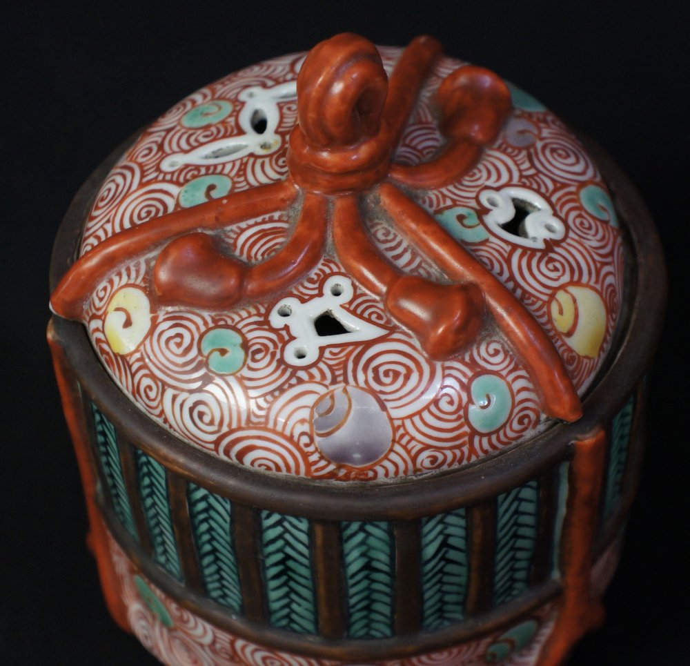 Antique Japanese censer Kutani Koro incense burner 1880 Japan Kiln fine art