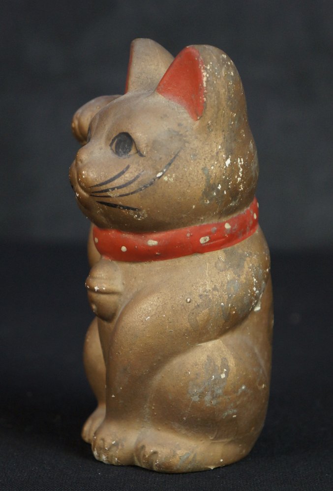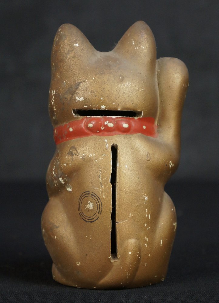 Tokyo cat Maneki Neko Japan lucky money box 1900 vintage ceramic craft.