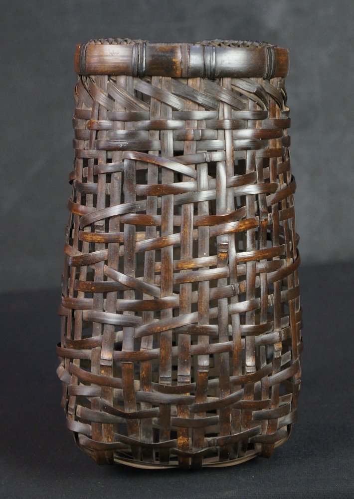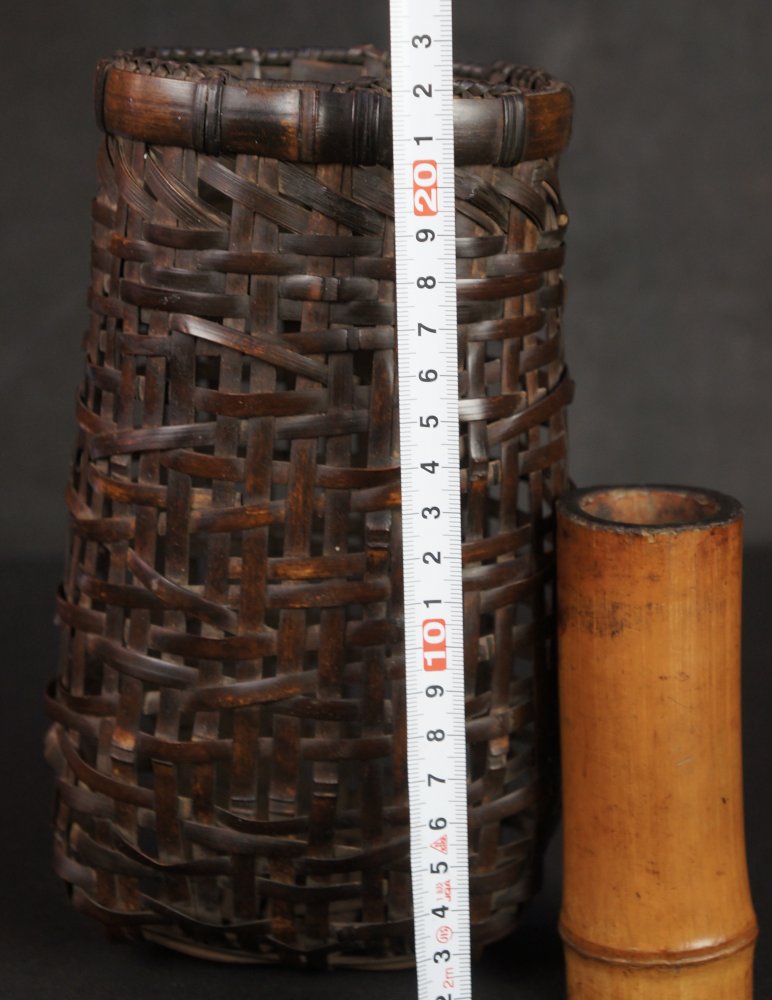Japan Wabisabi wall Ikebana woven bamboo floral vase 1900