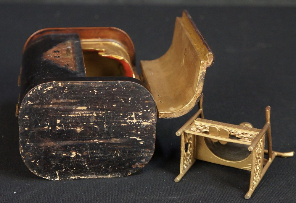 Japanese Buddhist shrine monk statue, lacquered wood Zushi case with enthroned guilded metal monk devotional item. Inner monk statue made from metal alloy (copper?). Zushi case in good conditions. Nice patina, in original conditions as found. Immediately usable.