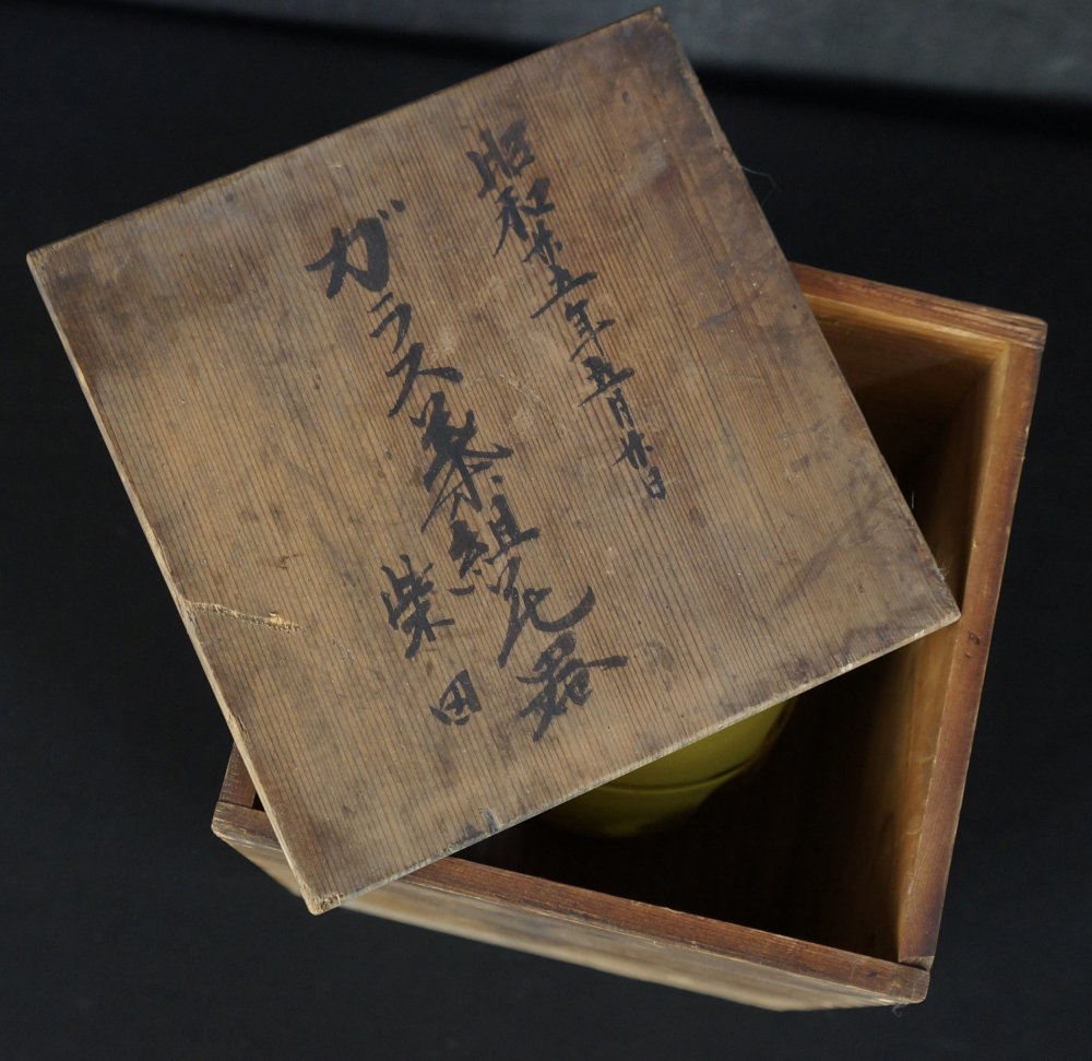 Japanese hand made glass flower vase, hand craft well preserved in good conditions with its protective wood box. Immediately usable, light wear from usage, no fractures, no nchipping. Hand made and cut glass.