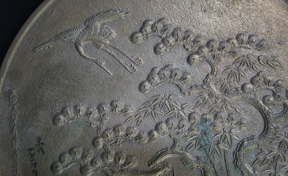 Antique Japanese large bronze mirror Geisha wear 1880 bronze hand craft