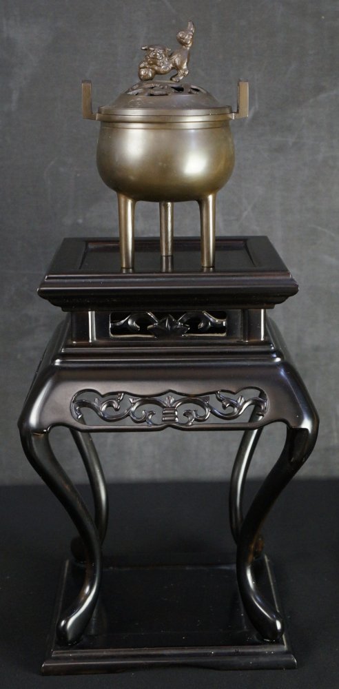 Japan bonsai Koro censer small stand table 1950 wood craft smoking tray