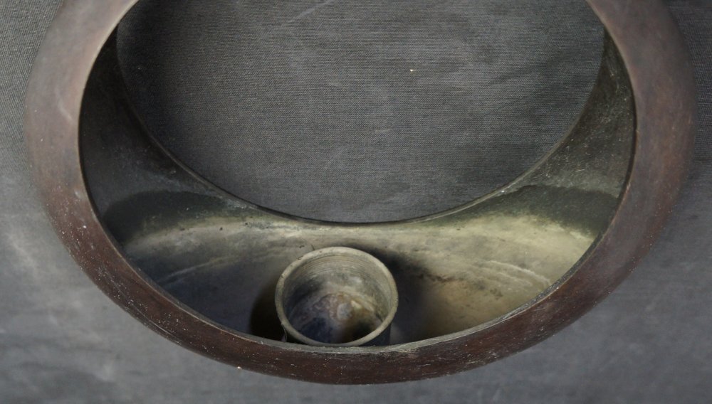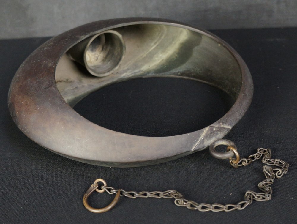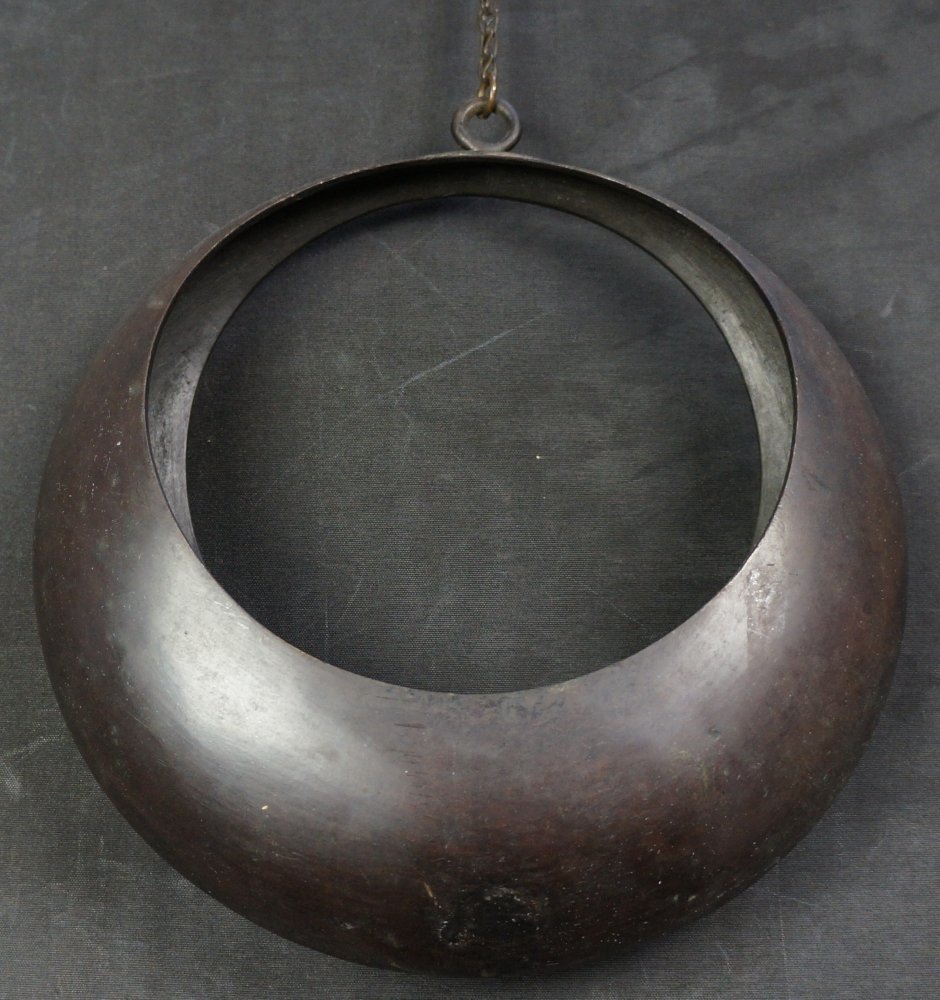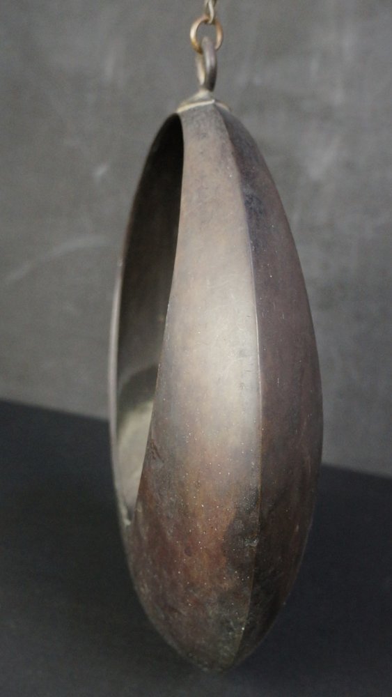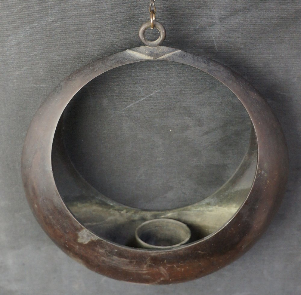 Japan bronze Ikebana hanging full moon vase Kyoto garden 1950 craft