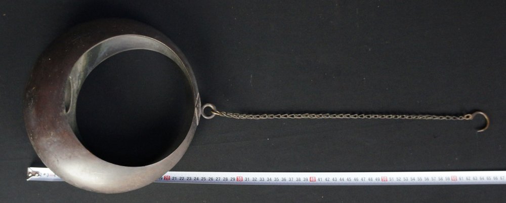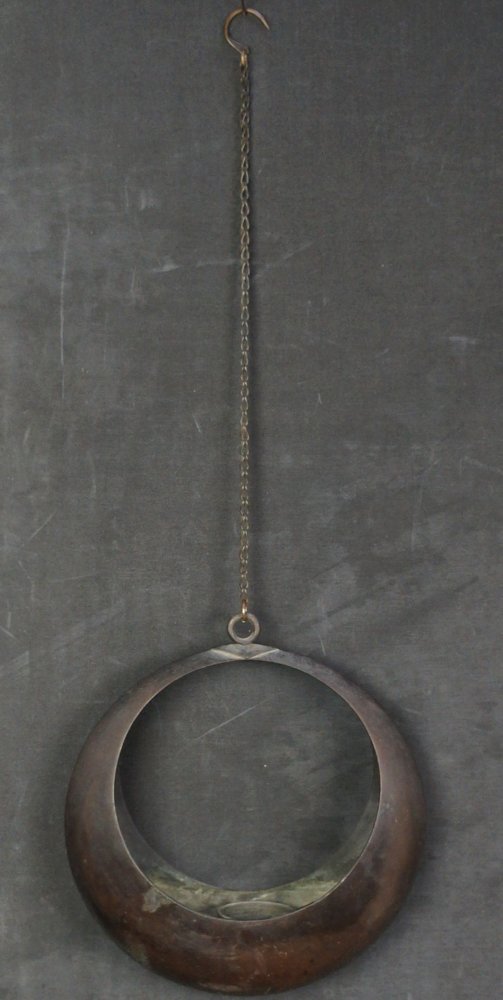 Japanese hanging fill moon vase for Ikebana compositions, good conditions with bronze chain holder. Full Moon shape, good conditions, immediately usable.