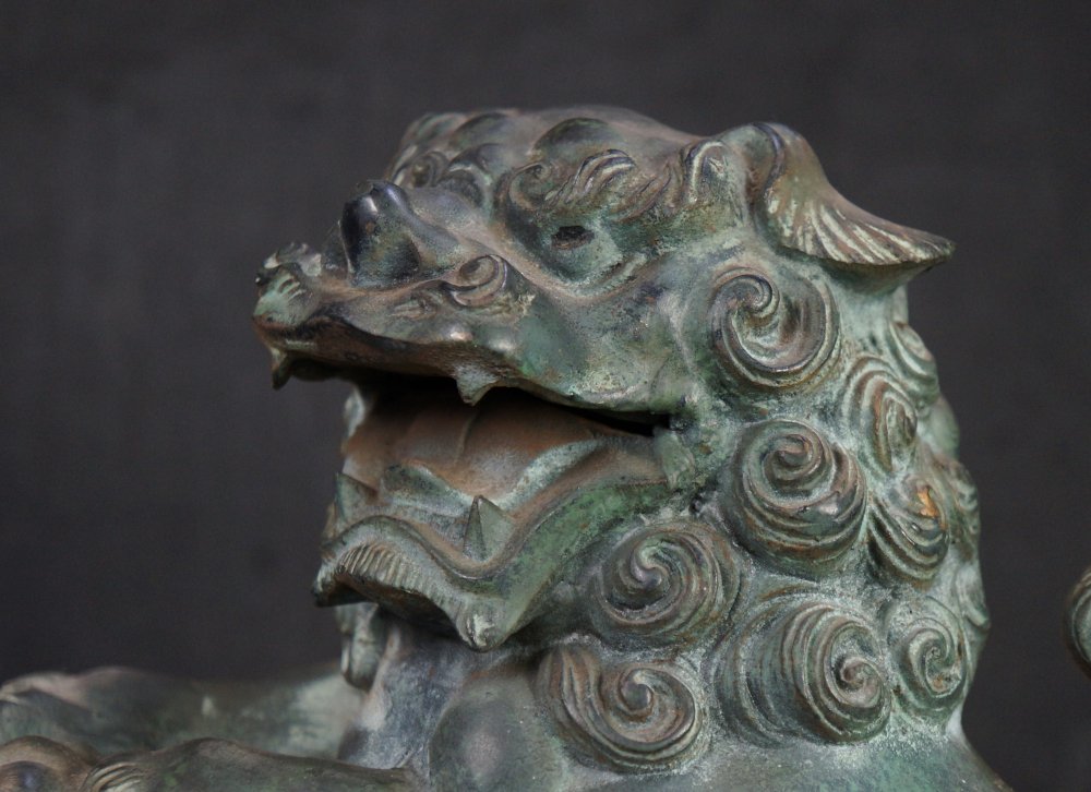 Japanese garden  Shishi lion-dog statue iron technique 1970