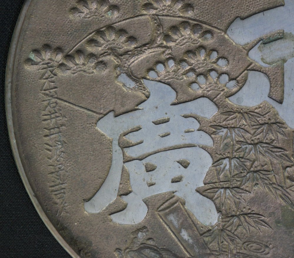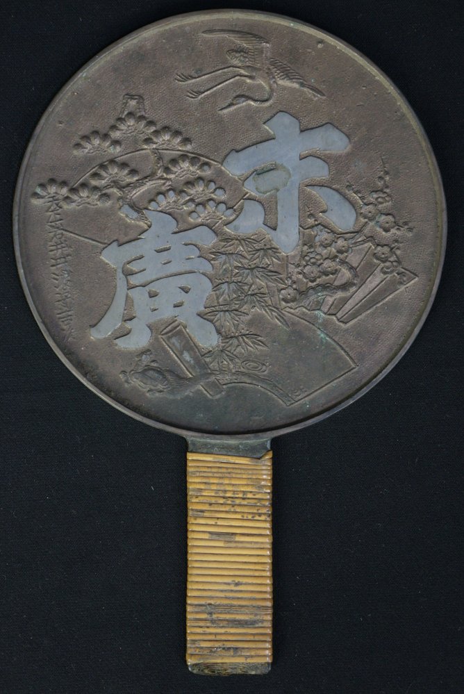 Antique Japan bronze mirror Kagami prosperity symbol craft 1880