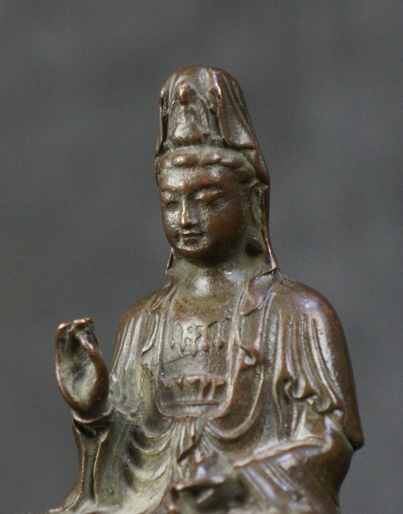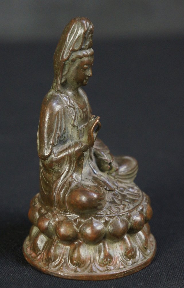 Japanese sculpture Buddhist Kannon deity bronze art 1950 lost wax art craft.