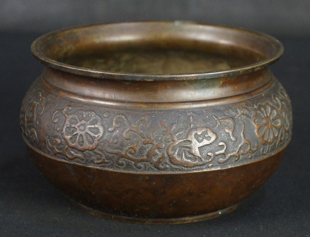 Antique Japan bronze Koboshi basin vase 1880 hand craft copper art