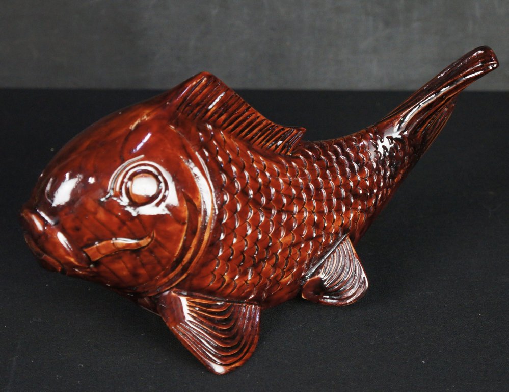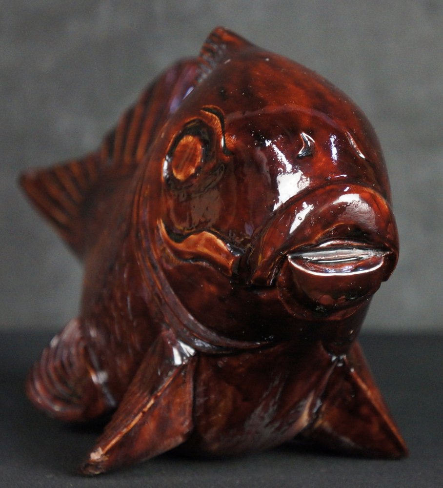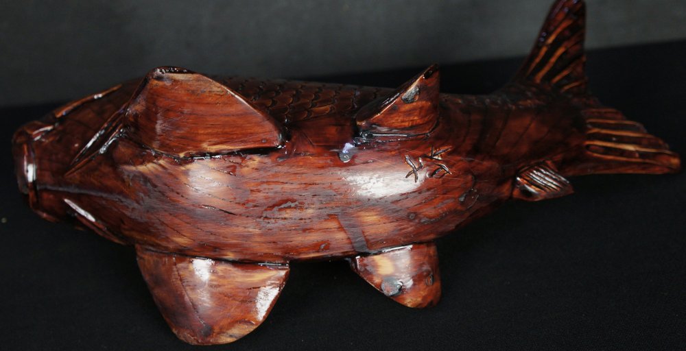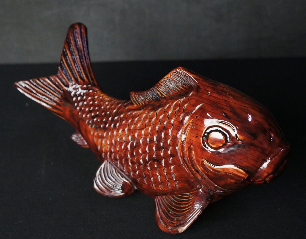 Japanese Koi carp wood carving sculpture 1970 vintage Kibori craft