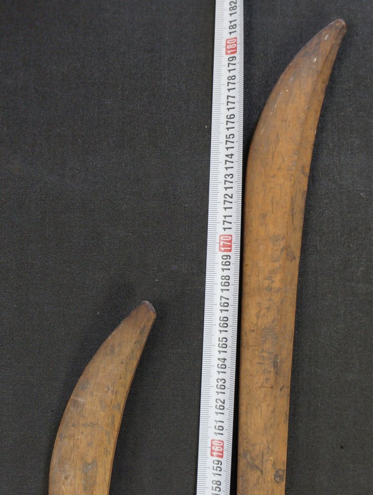 Vintage Kendo Naginata spear pair, Japanese martial art, hand made medium good conditions, wear from time and extensive use. No sharp blade, Naginata discipline, Japanese craft.