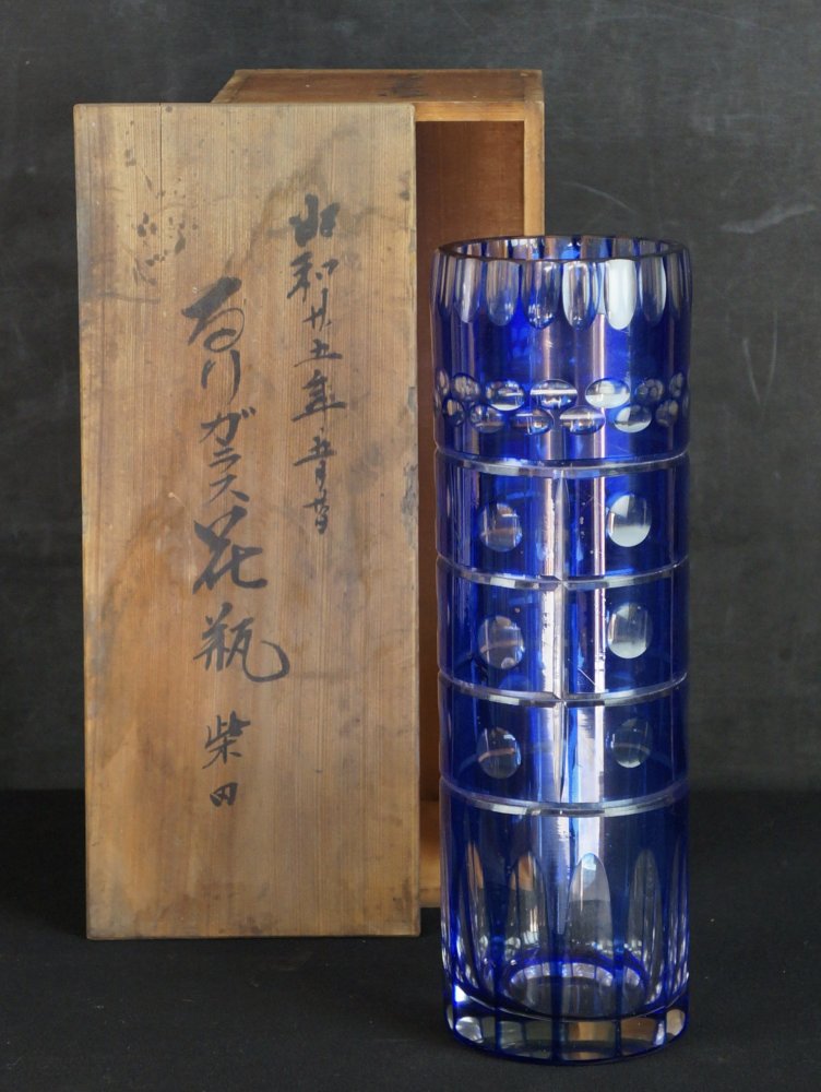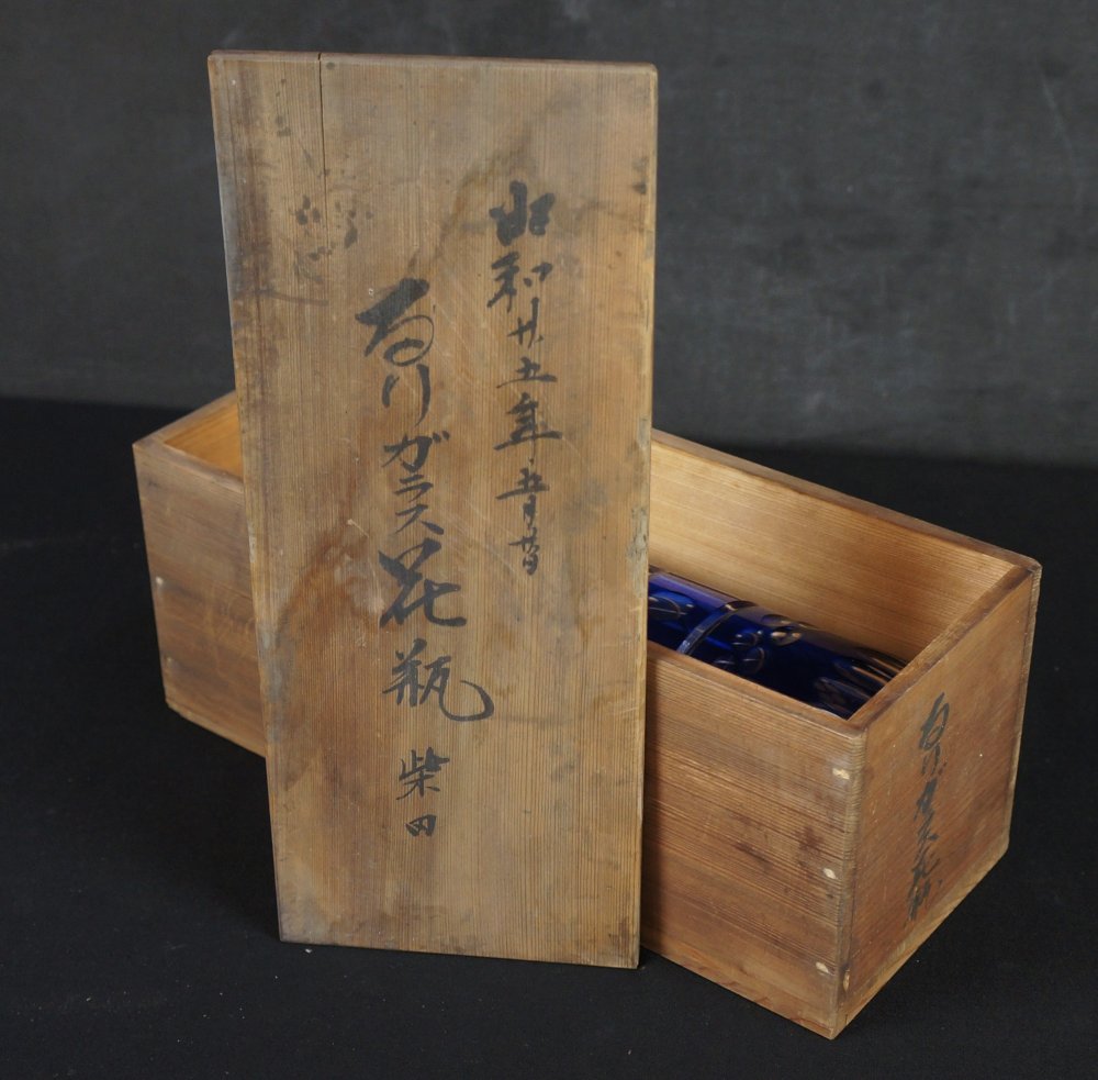 Japanese hand made glass flower vase, hand craft well preserved in good conditions with its protective wood box. Immediately usable, light wear from usage, no fractures, no nchipping. Meiji glass.