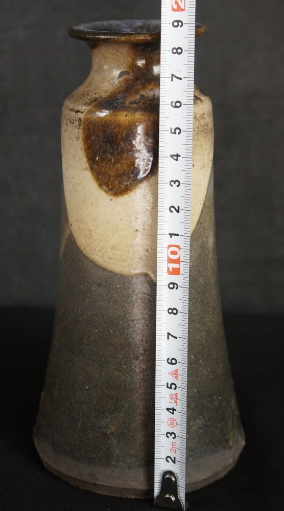 Wabisabi vase Japanese hand art 1900 minimalist pottery Oribe motif