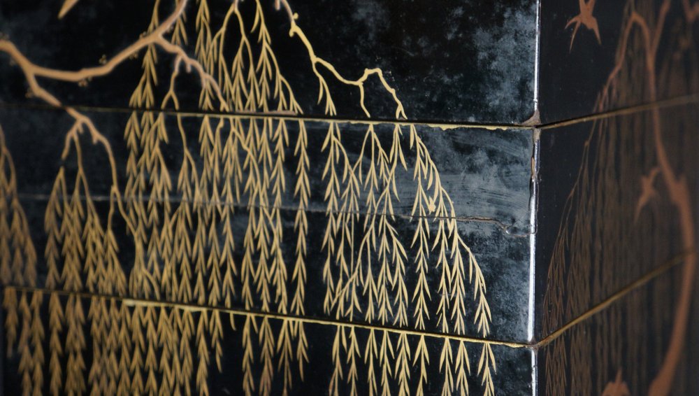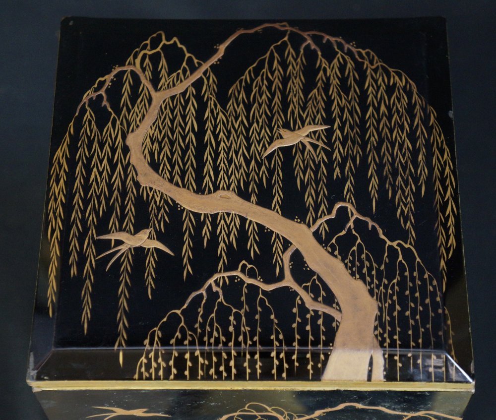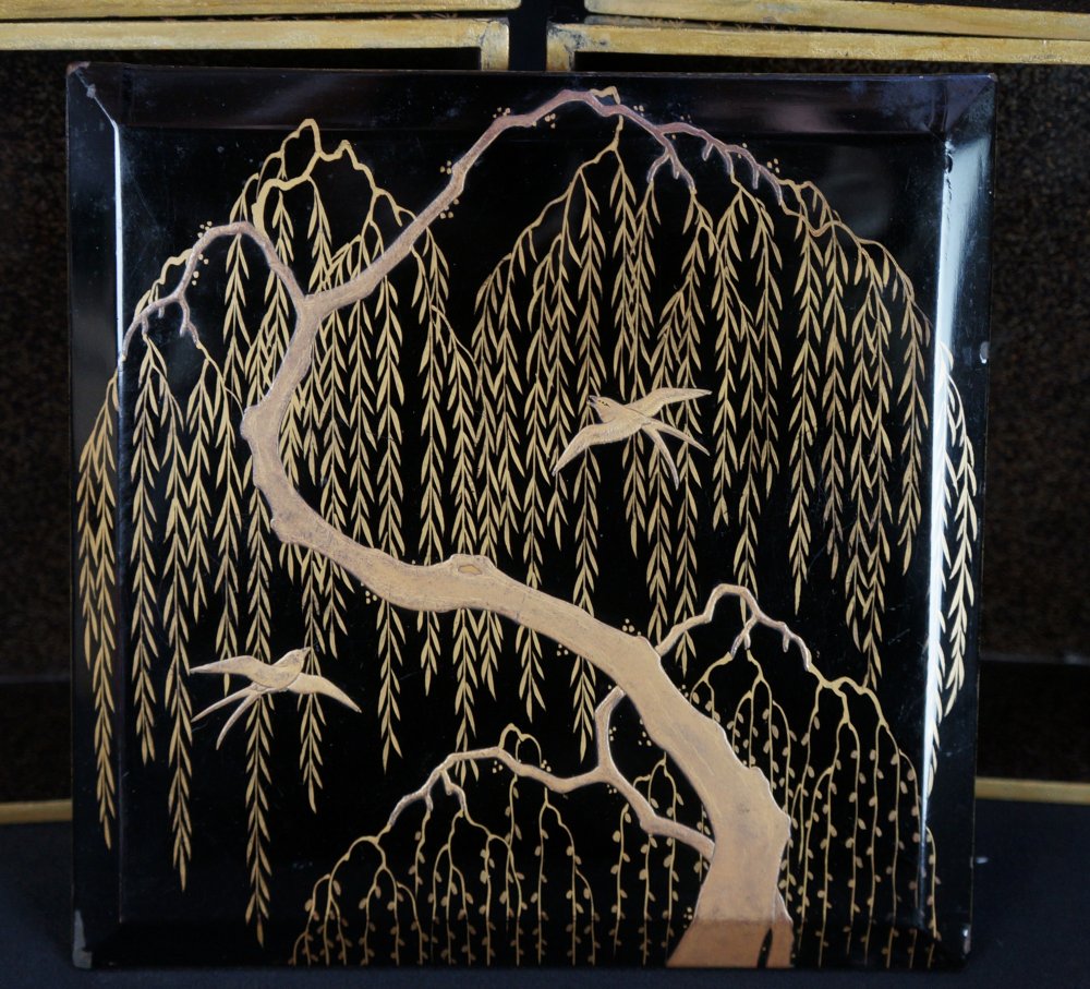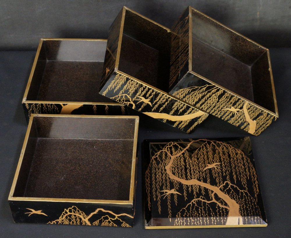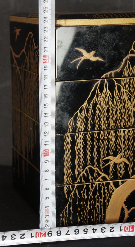 Japan lacquer Yanagi Bento Jyubako food box 1800 Wajima willow tree.